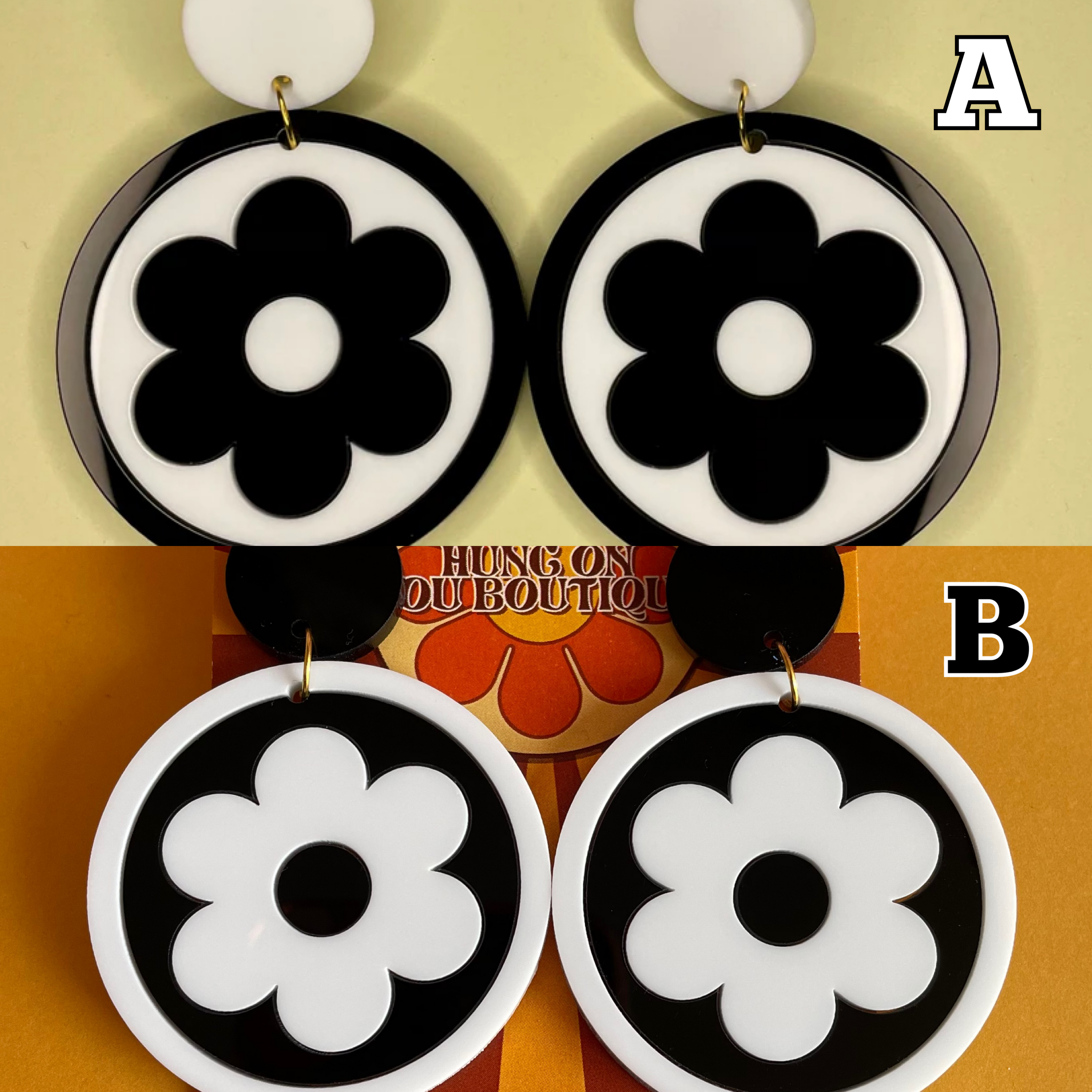 The Bazaar Earrings feature intricate laser-cut acrylic pieces that showcase a unique aesthetic. This design not only captures the essence of retro fashion but also adds a contemporary twist, making them suitable for various occasions. Whether you're dressing up for a special event or adding flair to your everyday look, these earrings are sure to turn heads.
