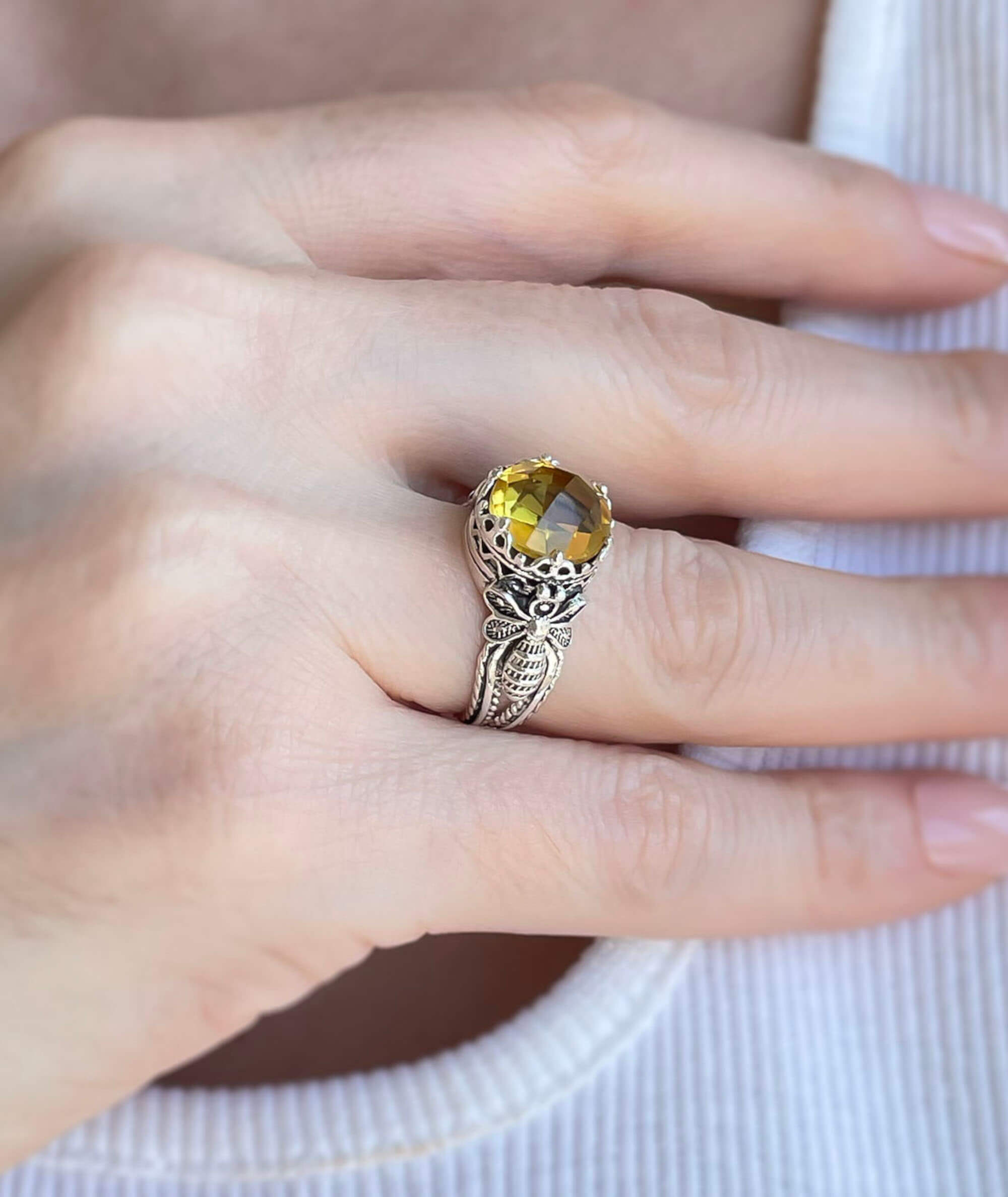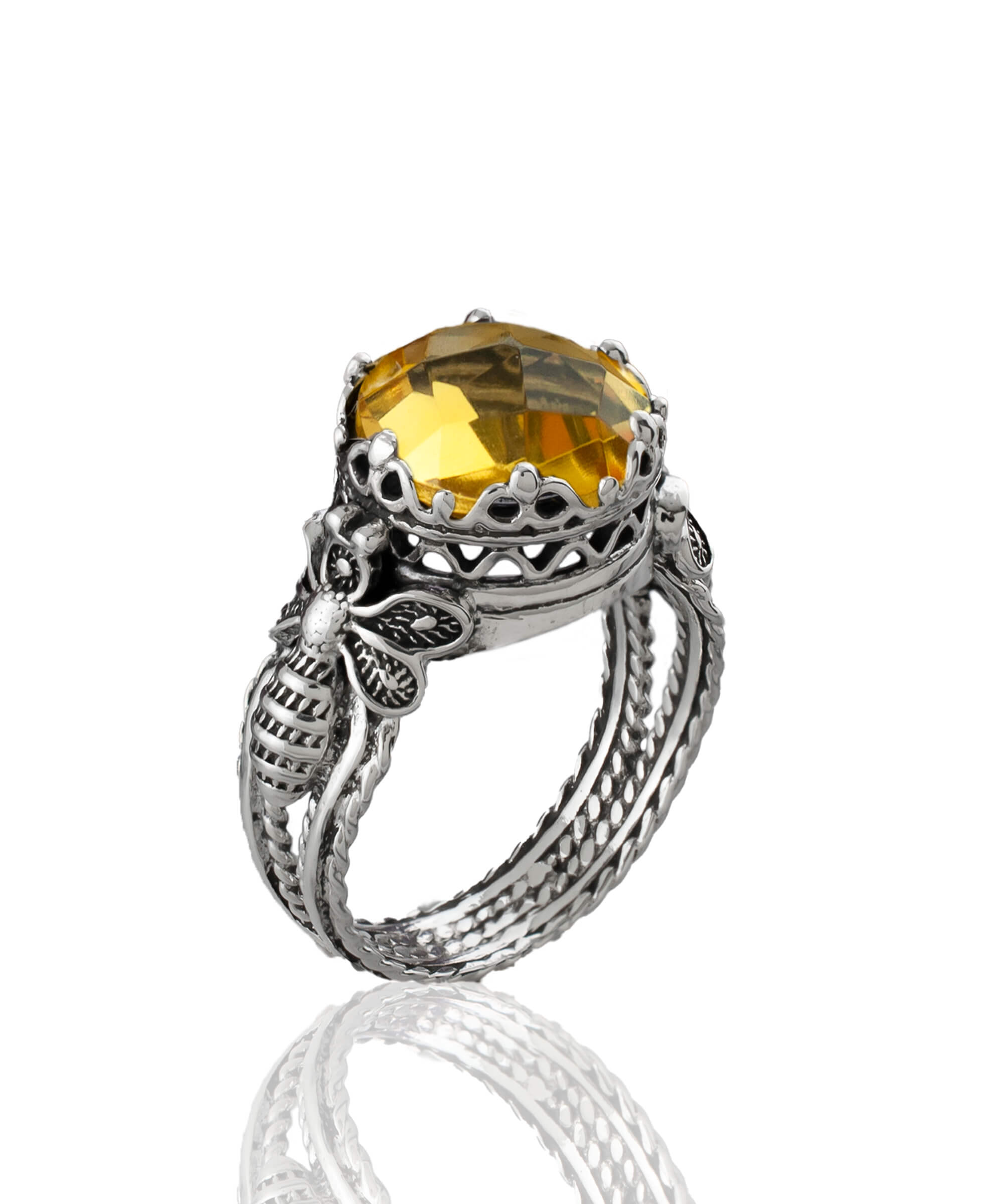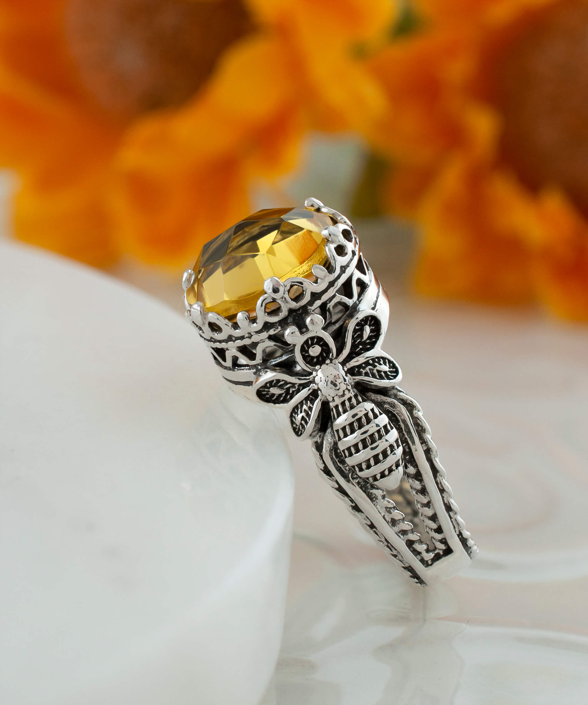 Don't miss out on the opportunity to own this exquisite piece of jewelry. Order your Bee Detailed Citrine Gemstone Filigree Art Women Silver Cocktail Ring today and add a touch of elegance to your jewelry collection. With its unique design and beautiful gemstone, this ring is sure to become a favorite accessory that you will cherish for years to come.