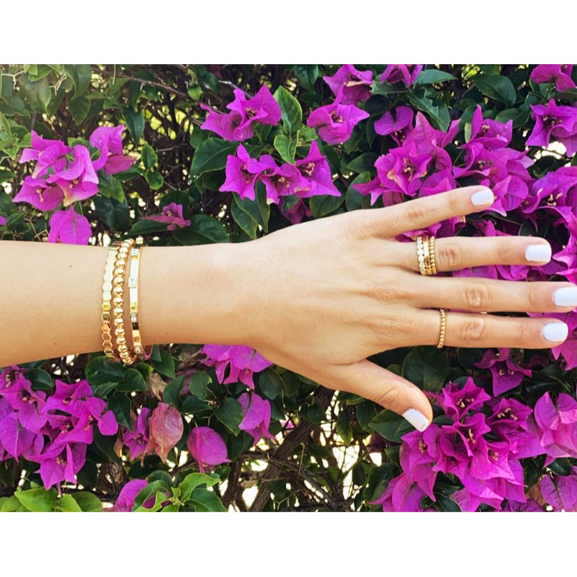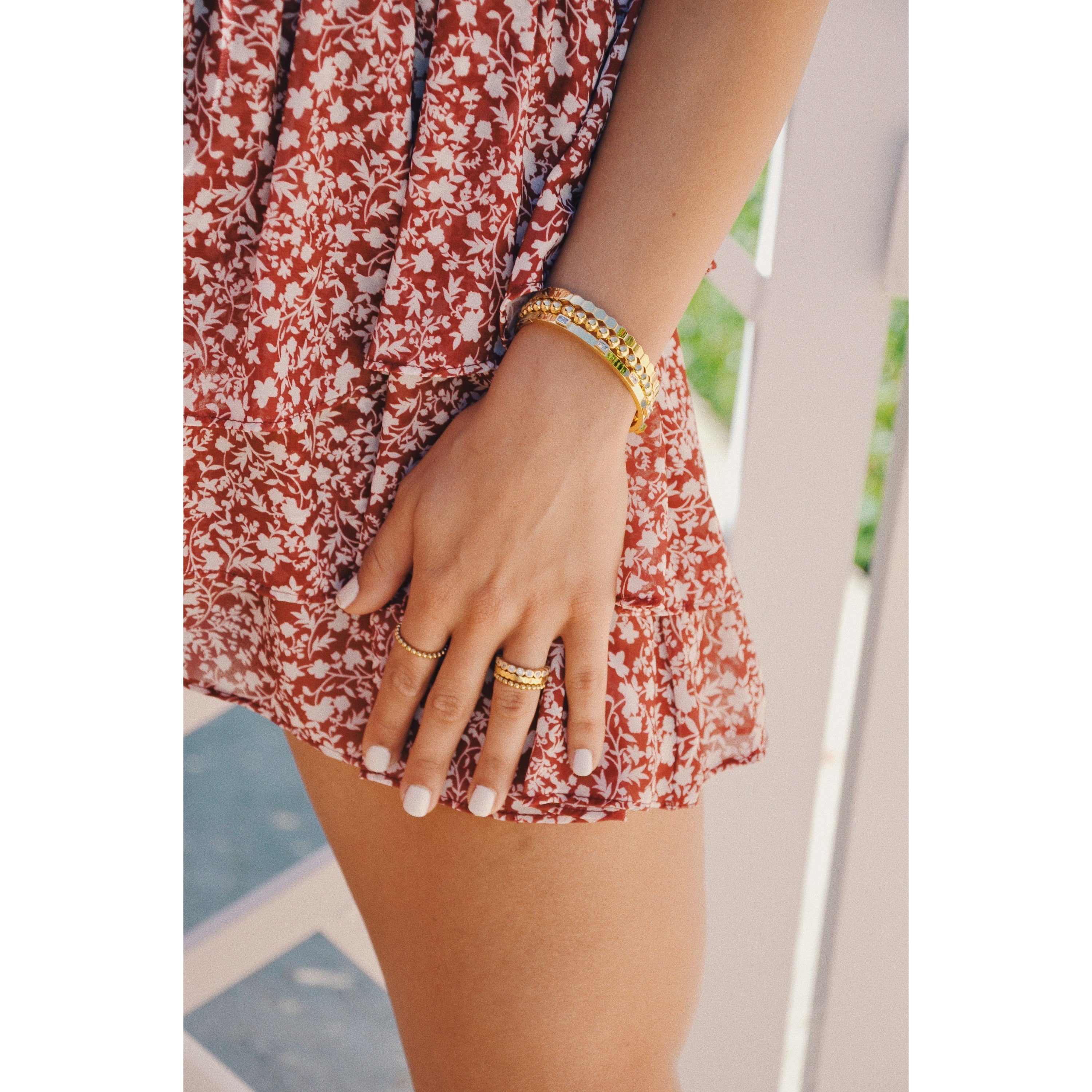 The Beaded Stackable Bracelet is made from high-quality materials, featuring an 18k gold plating over durable stainless steel. This combination not only enhances its aesthetic appeal but also ensures longevity and durability. The gold plating gives it a luxurious look, making it suitable for both casual and formal occasions.