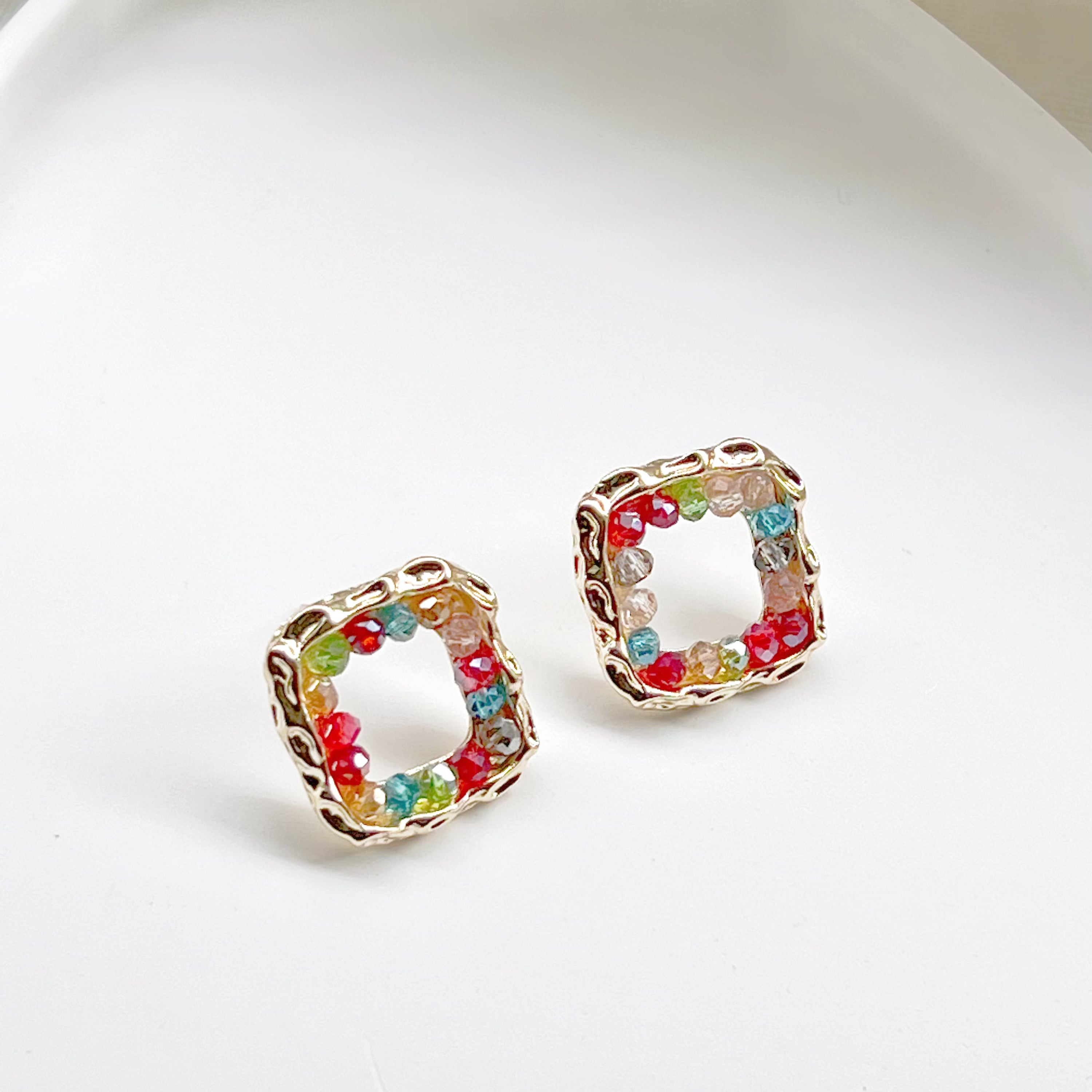 To maintain the beauty of your Rainbow Beads on Square Hoop Earrings, we recommend storing them in a cool, dry place and avoiding exposure to harsh chemicals or moisture. Clean them gently with a soft cloth to keep them looking their best. With proper care, these earrings will remain a cherished part of your jewelry collection for years to come.