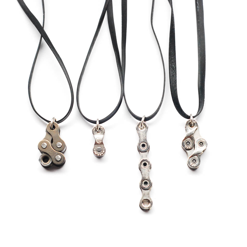 Each Bikeman Recycled Bike Chain Pendant Necklace is handcrafted in the United Kingdom, ensuring high-quality craftsmanship. The use of recycled materials significantly reduces waste, making this necklace an eco-friendly choice. By choosing this necklace, you are supporting sustainable practices and helping to minimize the environmental impact of fashion. The materials used include 50% recycled bike chain and 50% recycled inner tube, showcasing a commitment to reducing landfill waste.