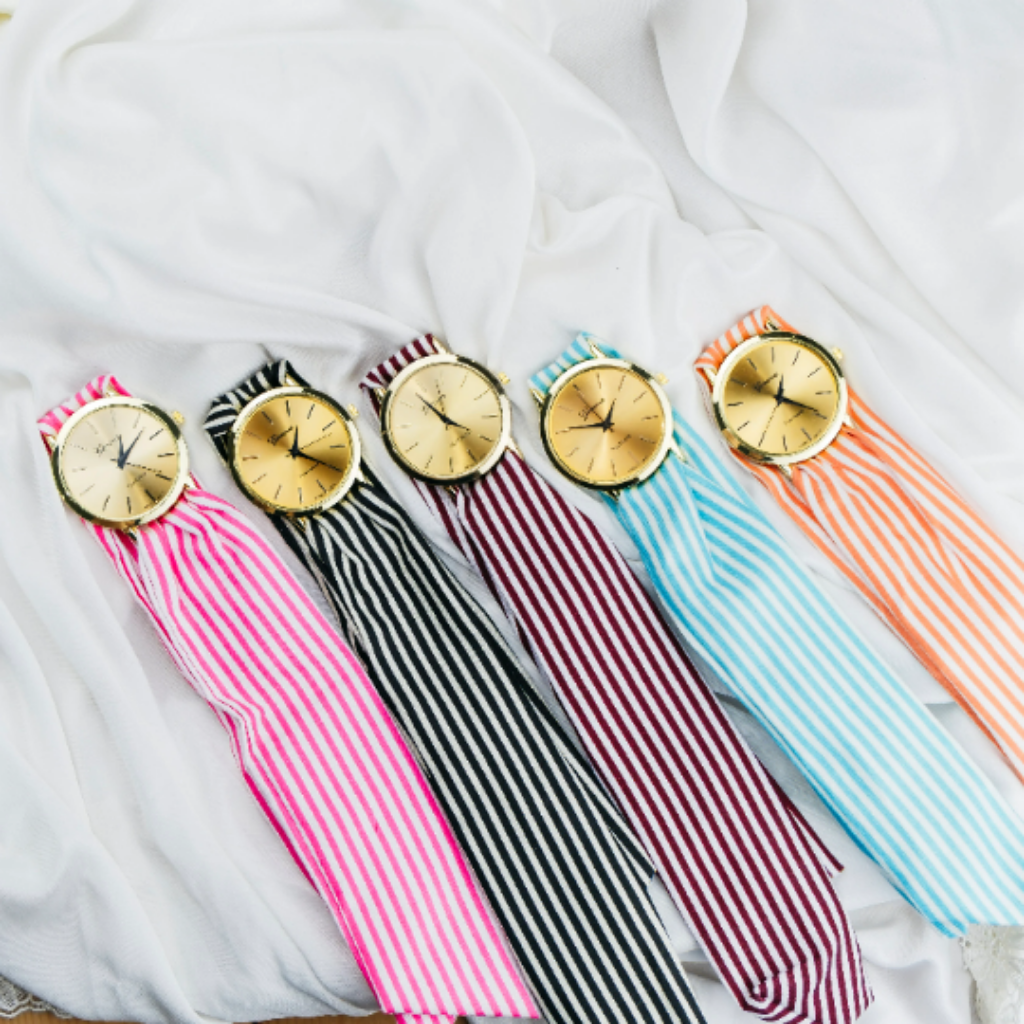 Dropship Black Changeable Stripe Cloth Women Bracelet Wristwatch