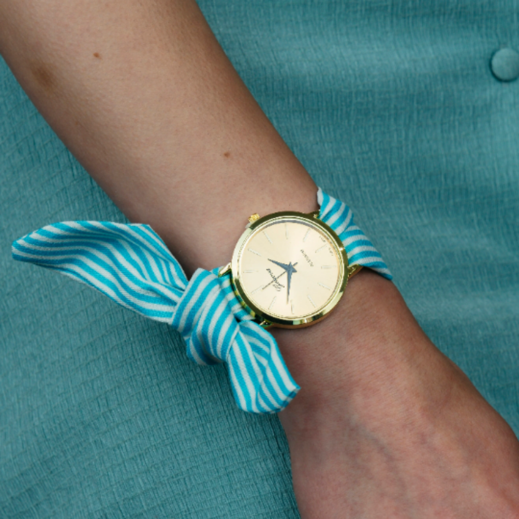 The Black Changeable Stripe Cloth Women Bracelet Wristwatch features a unique tie closure that adds a personal touch to your accessory. This bow-style fastening not only looks stylish but also allows for easy adjustments, ensuring that your watch stays securely in place throughout the day.
