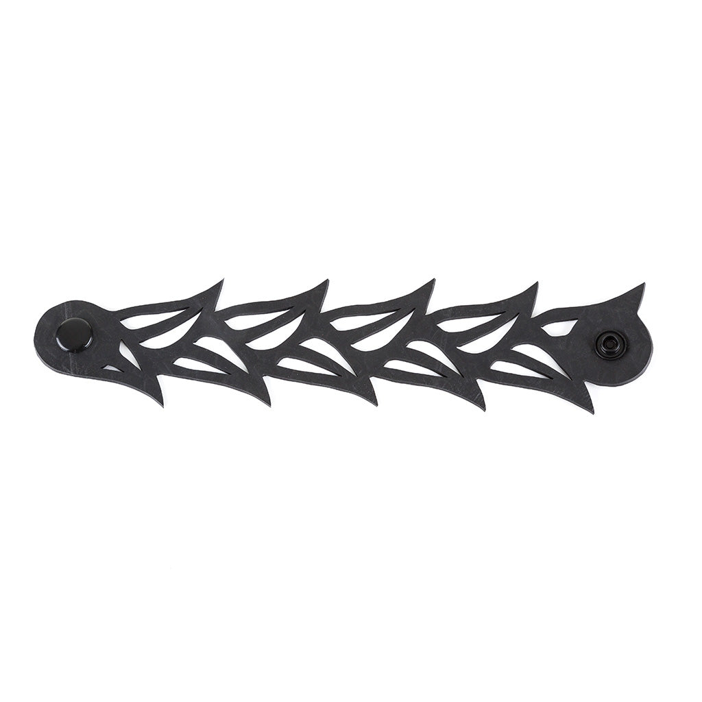 Handcrafted with care, the Black Tulip Rubber Bracelet is made from reclaimed rubber sourced from tyre inner tubes. This innovative use of materials not only helps reduce waste but also provides a cruelty-free alternative to traditional leather. The texture and patterns of the recycled rubber give each bracelet a distinctive look, ensuring that no two pieces are alike.