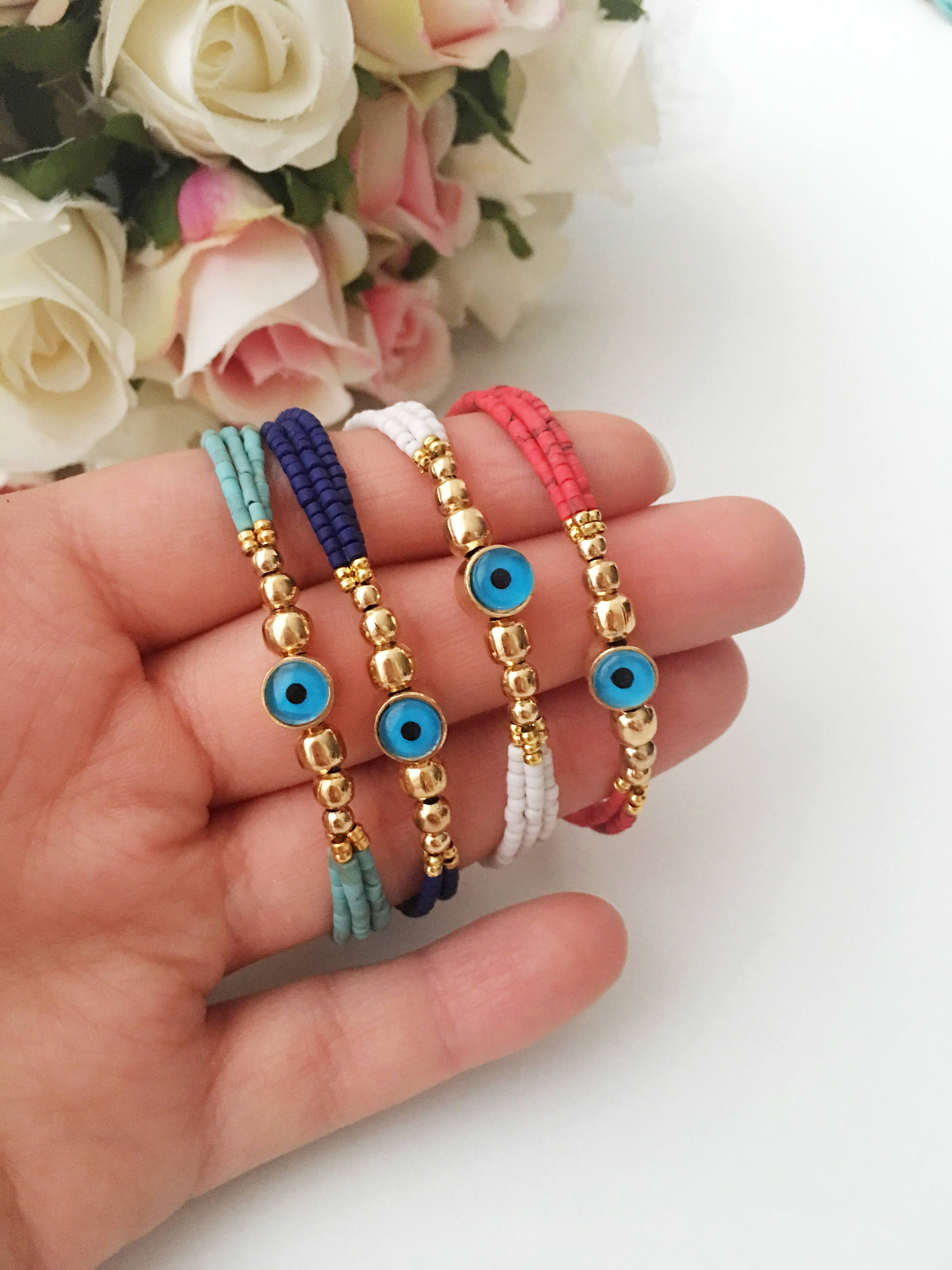 This versatile bracelet can be styled in numerous ways. Wear it alone for a minimalist look or stack it with other bracelets for a trendy layered effect. Pair it with casual outfits for a pop of color or dress it up with elegant attire for special occasions. The blue evil eye bracelet is a statement piece that complements any wardrobe.