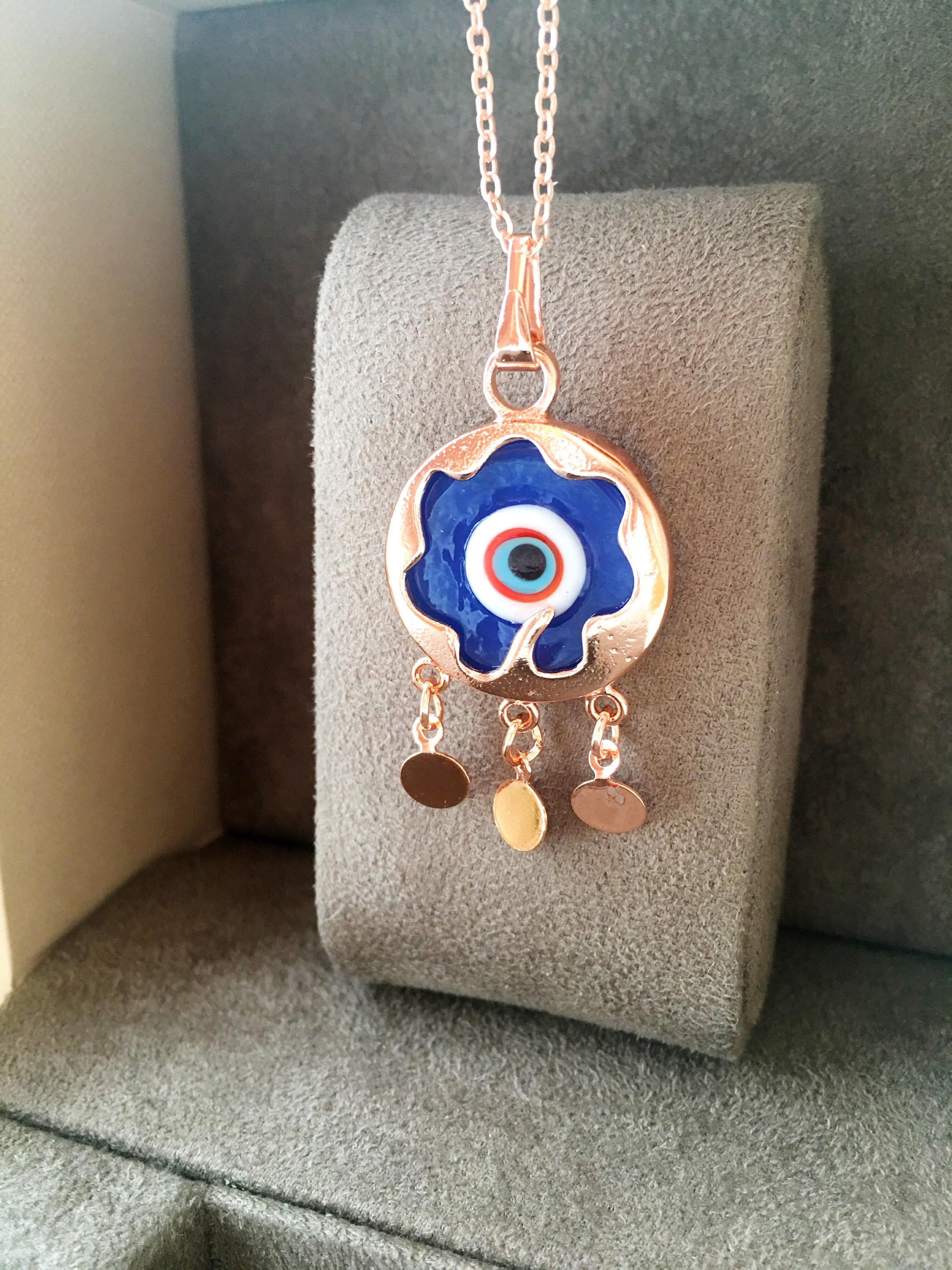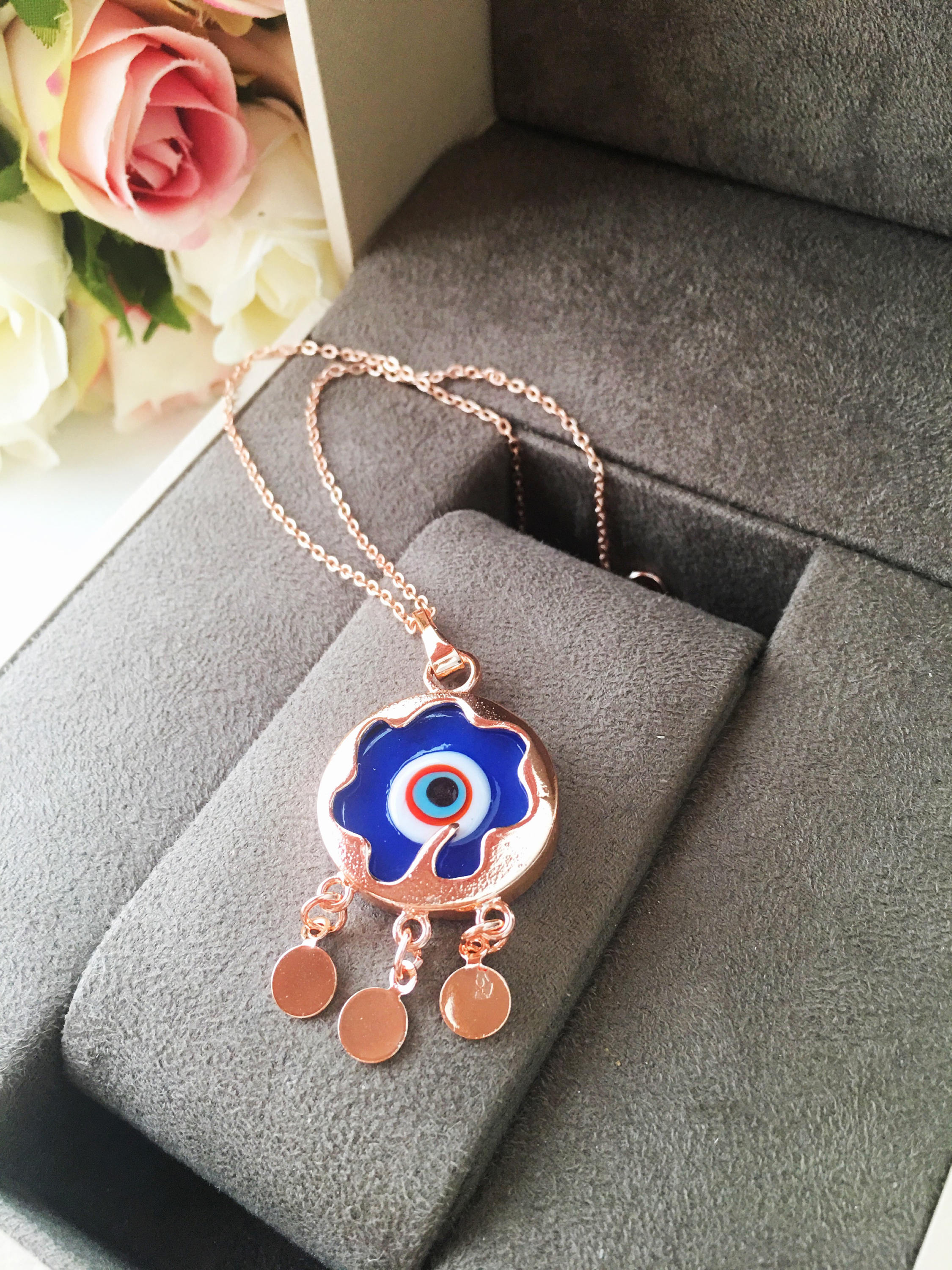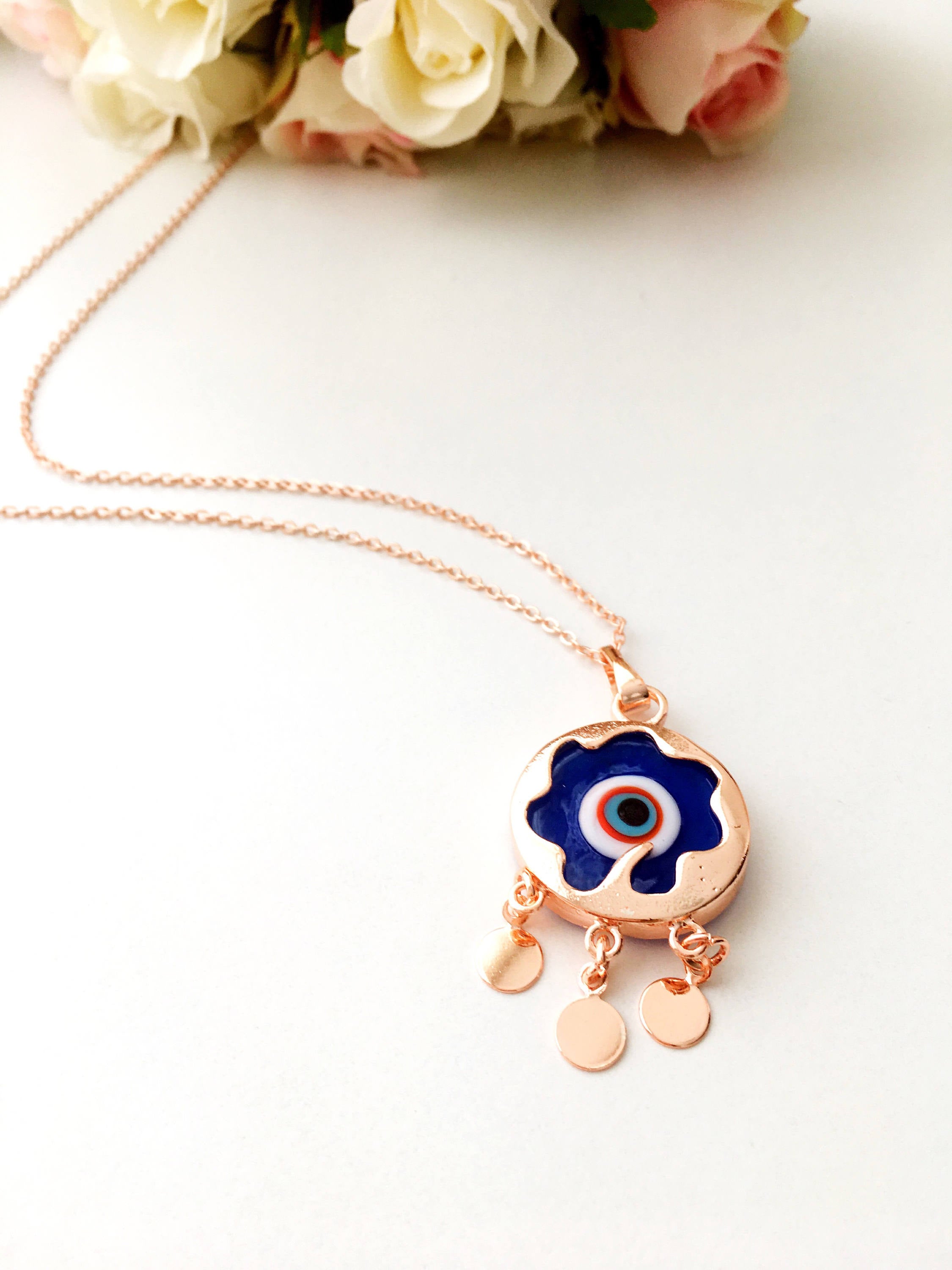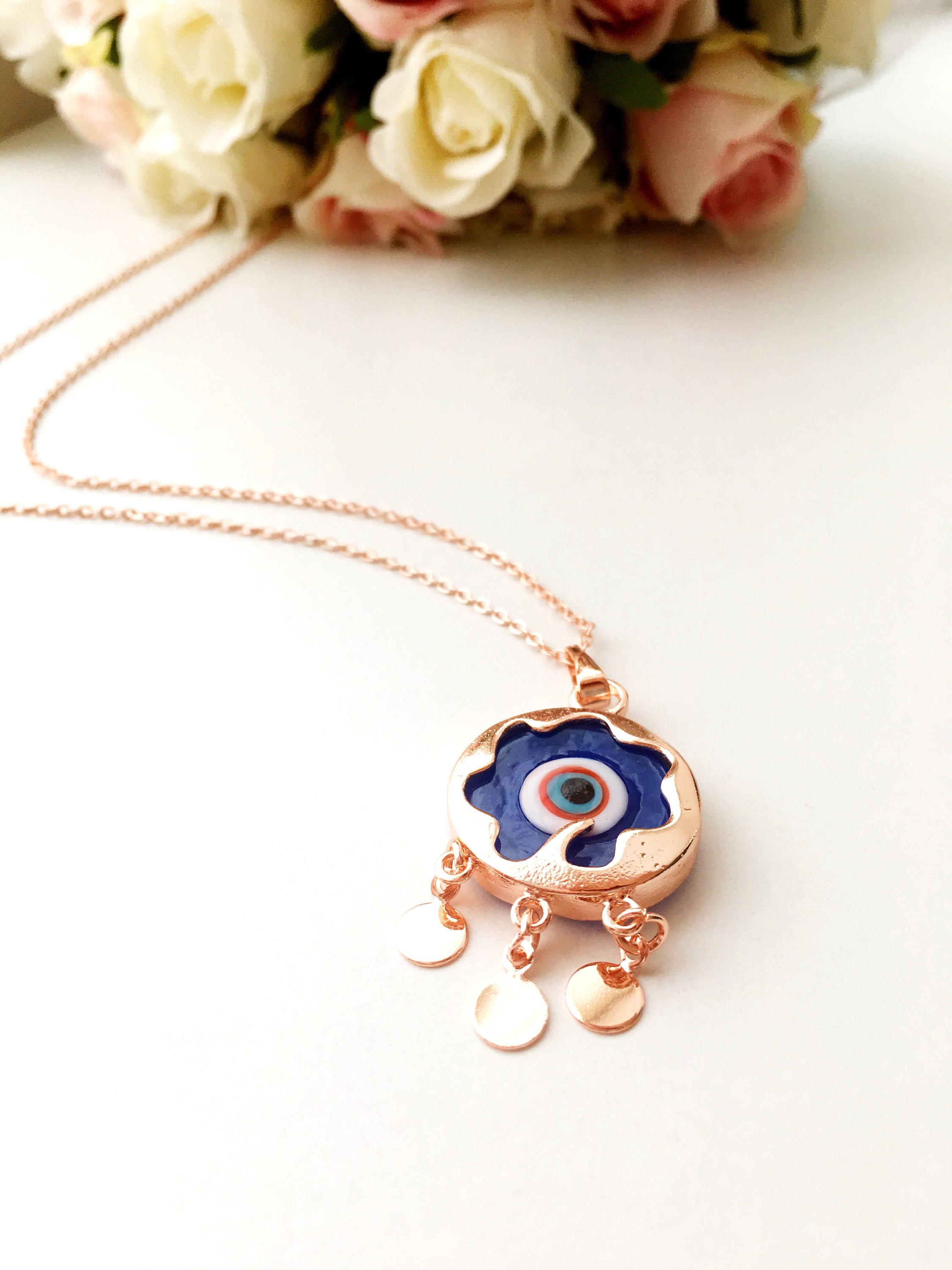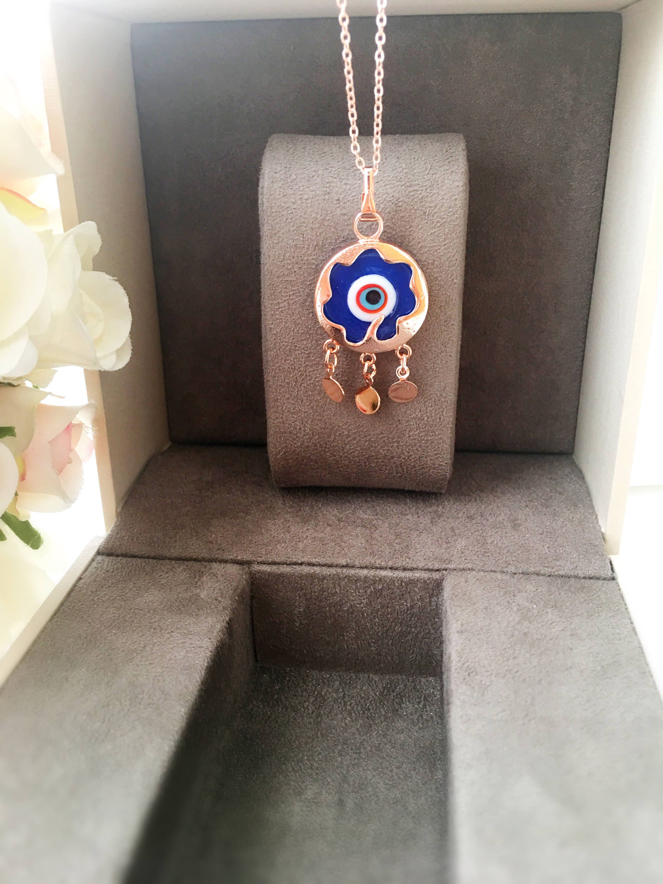 Our blue evil eye necklace is designed with durability in mind. The necklace features a stainless steel rose gold chain, which is resistant to tarnishing and ensures that your jewelry will maintain its shine and beauty for years to come. This means you can wear it daily without worrying about wear and tear, making it a practical addition to your jewelry collection.