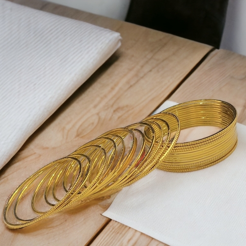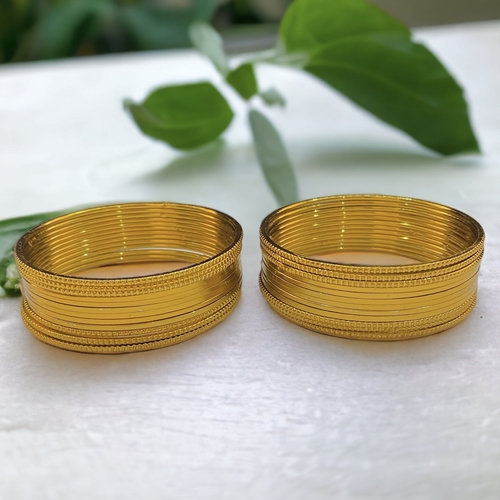 Gold-plated bangles are often adorned with intricate designs, including traditional motifs such as paisleys, flowers, and geometric patterns. They are frequently embellished with gemstones, enamel work, or delicate filigree, making them versatile for both daily wear and special occasions. Their lightweight nature and affordable price make them popular among a broad range of people, from those seeking elegant accessories for everyday wear to those looking to complement their festive attire.