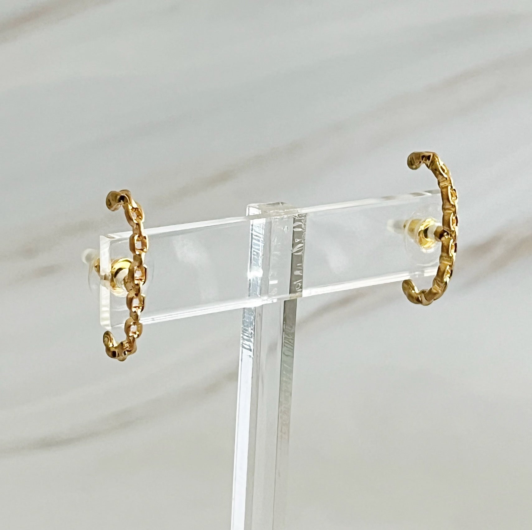 Measuring approximately 1 inch by 0.4 inches, the Chain C Shape Post Earrings are the perfect size to make an impact without being overwhelming. Their lightweight design ensures that they are comfortable to wear throughout the day, whether you're at work, out with friends, or attending a special event.