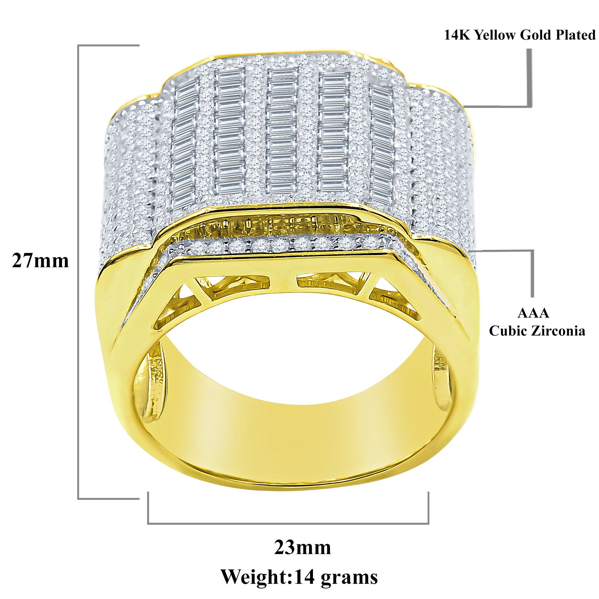 The ring measures 27 mm in length and 23 mm in width, making it a comfortable fit for daily wear. Weighing only 14 grams, it is lightweight and easy to wear, allowing you to enjoy its beauty without feeling weighed down. The square motif design, complemented by minute unfaded stones, adds a touch of modern elegance to this classic piece.