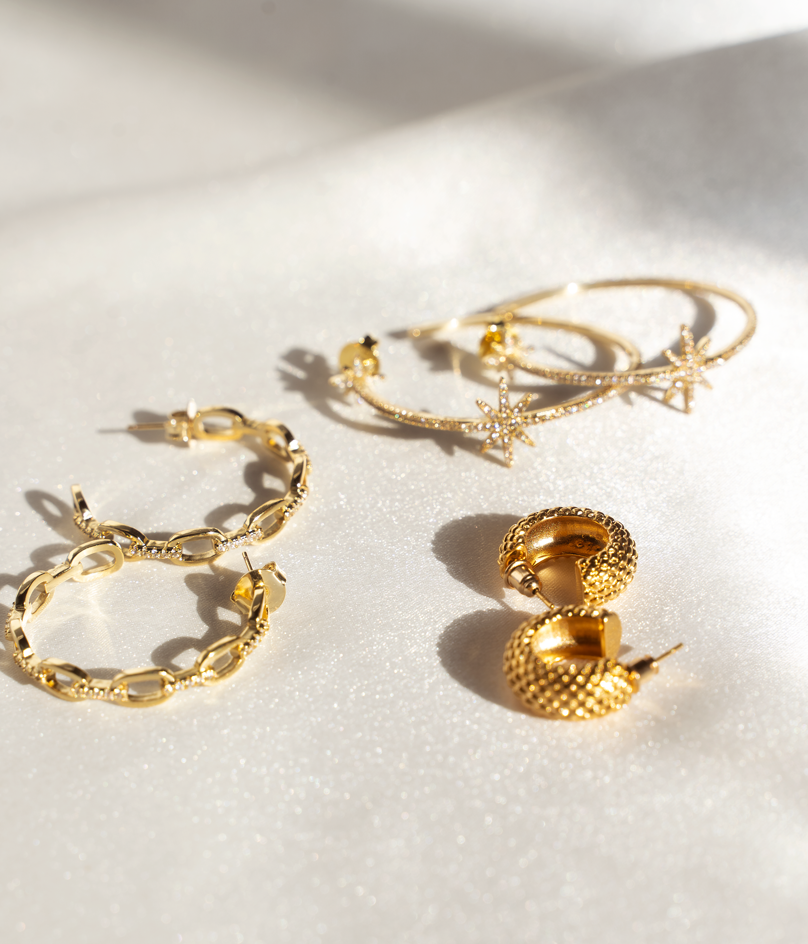 To keep your CIARA Hoop Earrings looking their best, it is important to follow some simple care instructions. Avoid exposing them to harsh chemicals or abrasive materials, as this can damage the gold plating. When not in use, store them in a soft pouch or jewelry box to prevent scratches. Regularly clean them with a soft cloth to remove any dirt or oils that may accumulate over time.