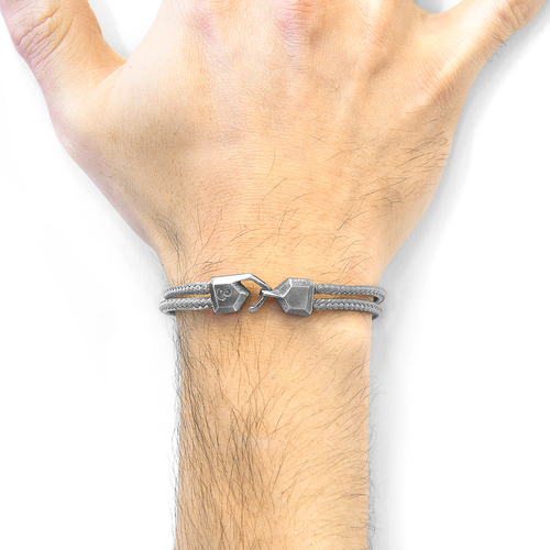 The Classic Grey Cromer Silver and Rope Bracelet was both designed and skilfully handcrafted completely in Great Britain. Combining British craft manufacturing with a discerning modern-minimalist style, this ANCHOR & CREW bracelet features: