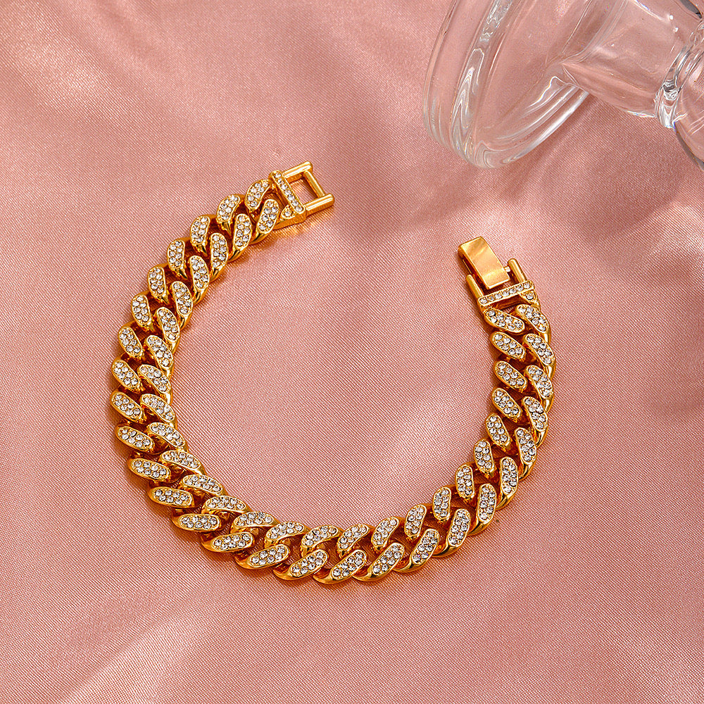 Cuba Rhinestone Bracelet featuring sparkling rhinestones on a durable alloy band, elegantly designed for stylish wear.