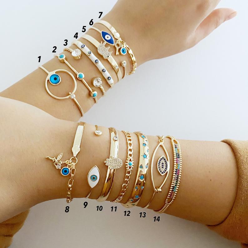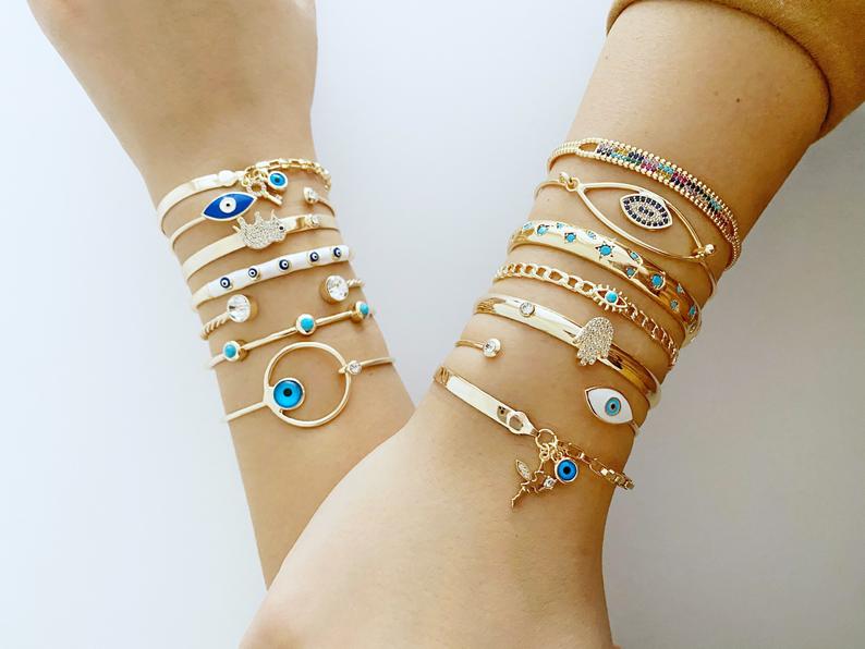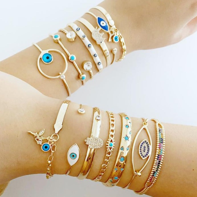 Introducing our exquisite Cuff Bracelet collection, featuring a stunning array of Evil Eye designs that not only elevate your style but also offer a sense of protection. Each bracelet in this collection is meticulously crafted to ensure quality and durability, making them perfect for everyday wear. With 14 different styles available, you can choose the one that resonates with your personal style during checkout.