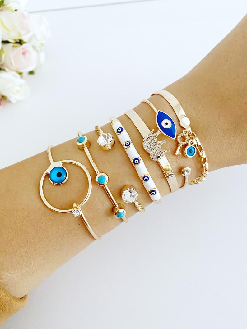 In summary, our Cuff Bracelet collection featuring the Evil Eye design is a must-have for anyone looking to combine style with meaning. With its unique charm, durable materials, and adjustable fit, this bracelet is perfect for anyone who appreciates quality craftsmanship and the protective symbolism of the Evil Eye. Explore our collection today and find the perfect bracelet that speaks to you!