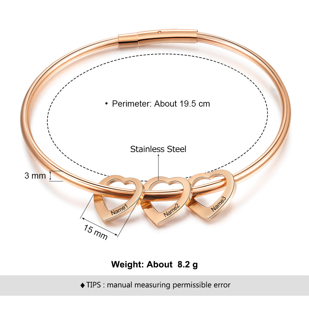 Custom Love Bracelet in white gold, gold, and rose gold plating, showcasing personalized design and stainless steel material.