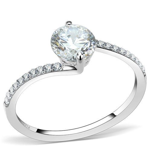 The centerpiece of the DA013 ring is a stunning AAA Grade CZ stone, measuring 6 mm in size. This clear stone is expertly cut to reflect light beautifully, mimicking the appearance of a diamond. The AAA grade designation ensures that the stone is of the highest quality, providing exceptional brilliance and clarity that will catch the eye of anyone who sees it.