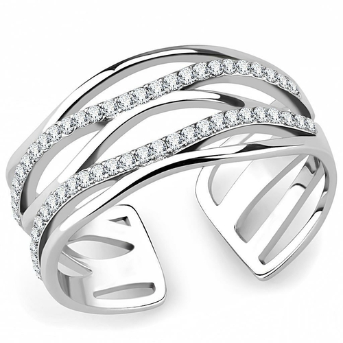 DA047 High Polished Stainless Steel Ring featuring a clear AAA Grade CZ center stone, showcasing its elegant design and shiny finish.