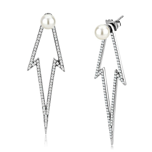 The DA299 earrings are adorned with a synthetic white center stone, measuring 6 mm in size. This stone adds a touch of sophistication and elegance, making these earrings suitable for both casual and formal occasions. The white color of the stone complements the shiny stainless steel, creating a harmonious look that is sure to turn heads.