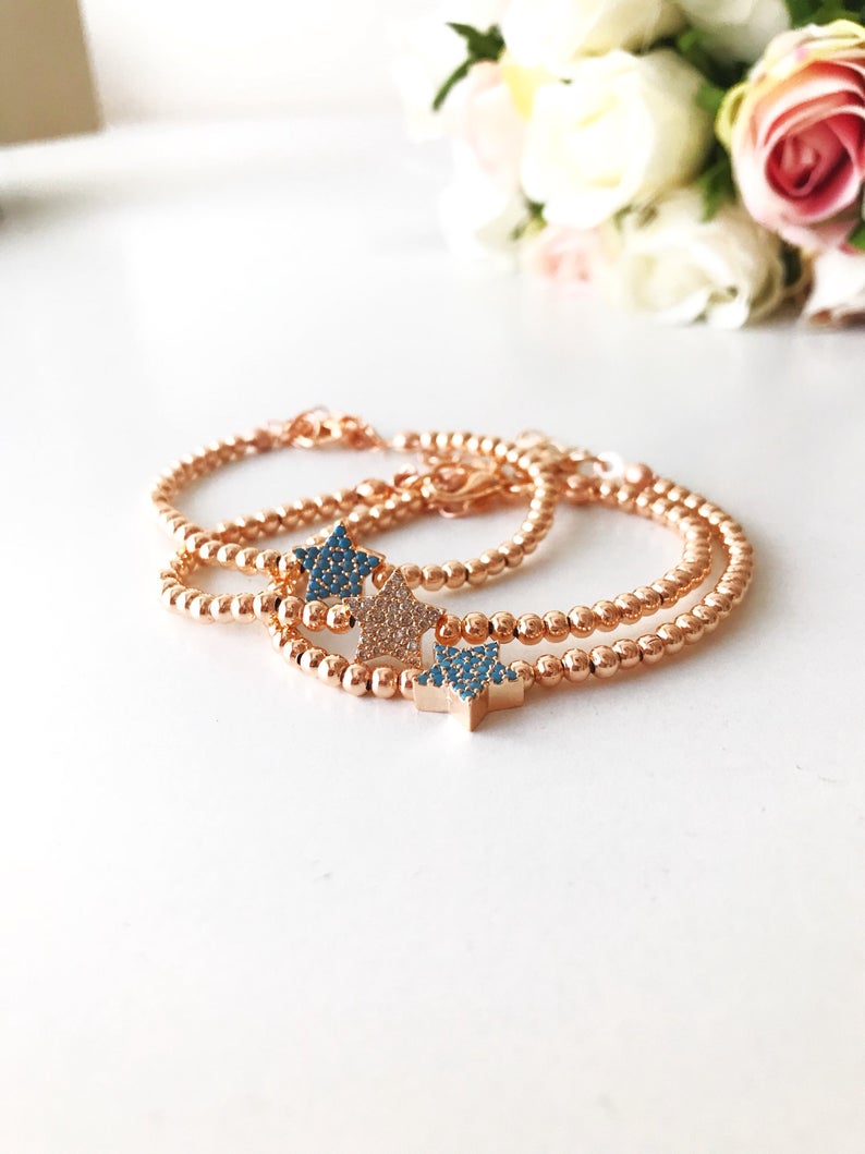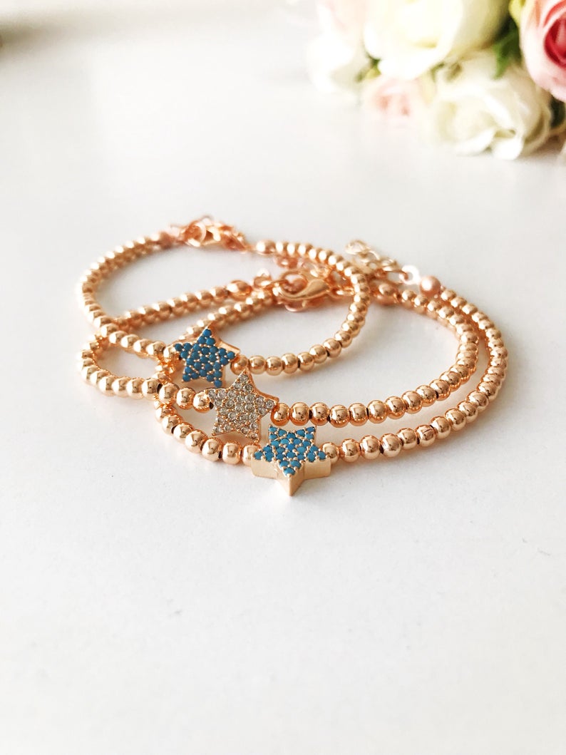 Dropship Dainty Star Bracelet, Rose Gold Beaded Bracelet, Chain Bracelet