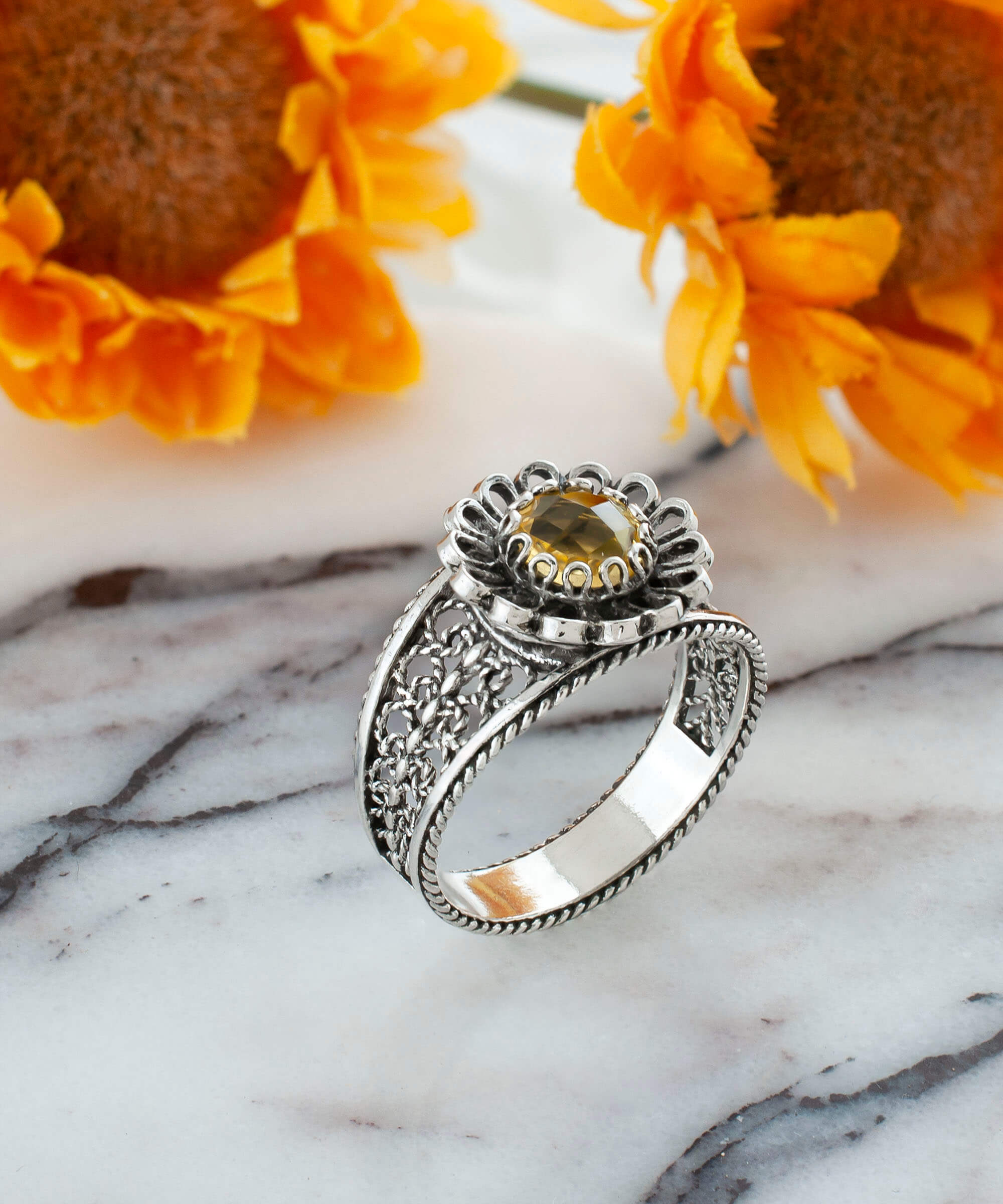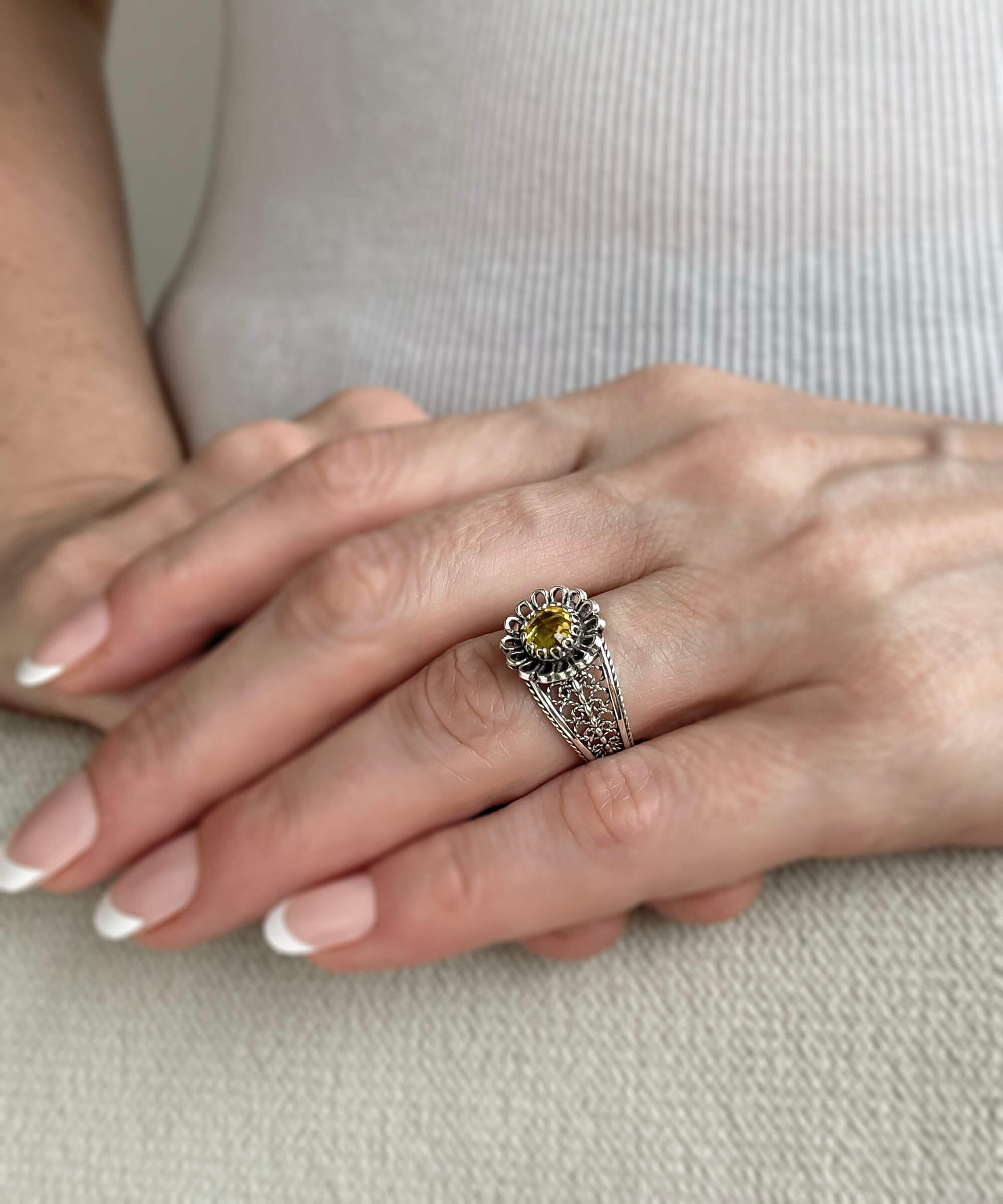 In conclusion, the Daisy Figured Citrine Gemstone Filigree Art Women Silver Cocktail Ring is a must-have for anyone who appreciates fine jewelry. Its elegant design, quality materials, and versatility make it an excellent addition to any collection. Whether you’re treating yourself or gifting it to someone special, this ring is sure to impress.