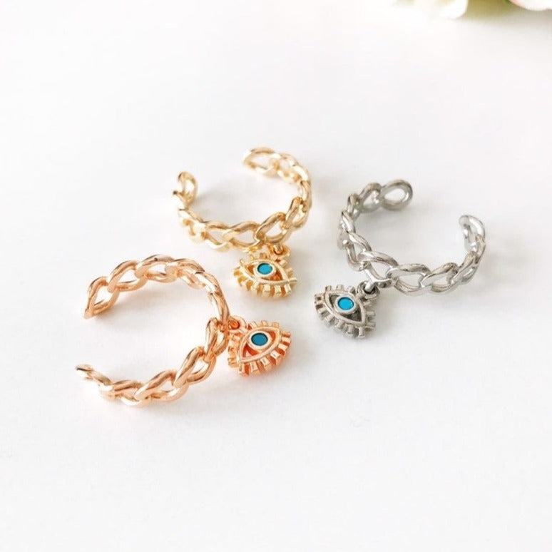Whether you're dressing up for a special occasion or looking for a casual everyday accessory, our Dangle Evil Eye Rings are the perfect choice. Their elegant design makes them suitable for both formal and informal settings. Pair them with your favorite outfit, and let them add a touch of charm and protection to your look.