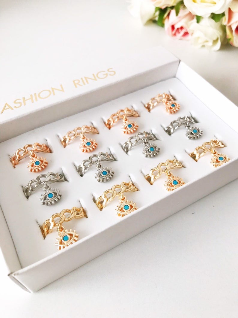 To keep your Dangle Evil Eye Rings looking their best, it's essential to follow some simple care instructions. Avoid exposing the rings to harsh chemicals or abrasive materials. When not in use, store them in a soft pouch or jewelry box to prevent scratches and tarnishing. With proper care, these rings will remain a cherished part of your jewelry collection for years to come.