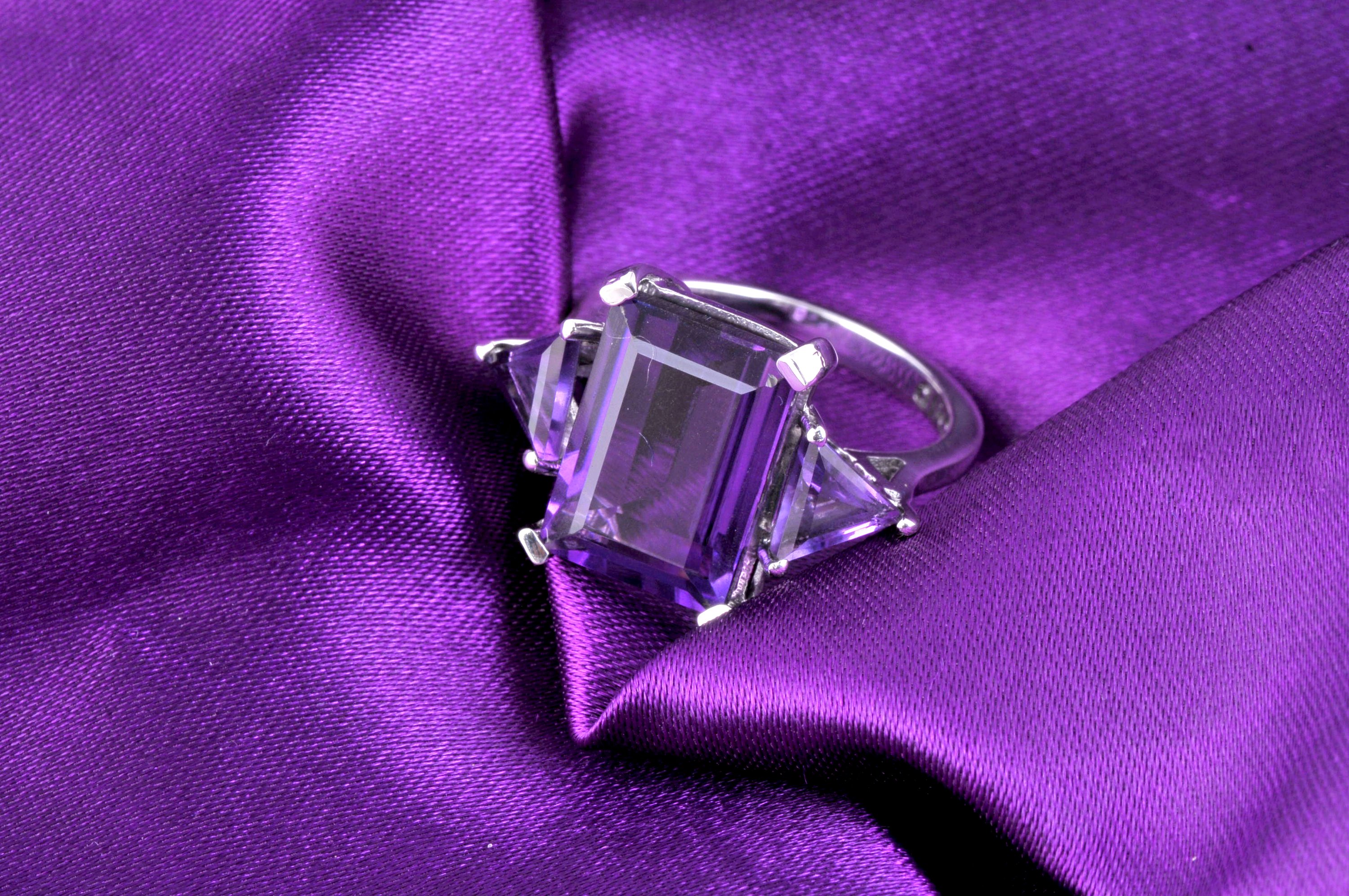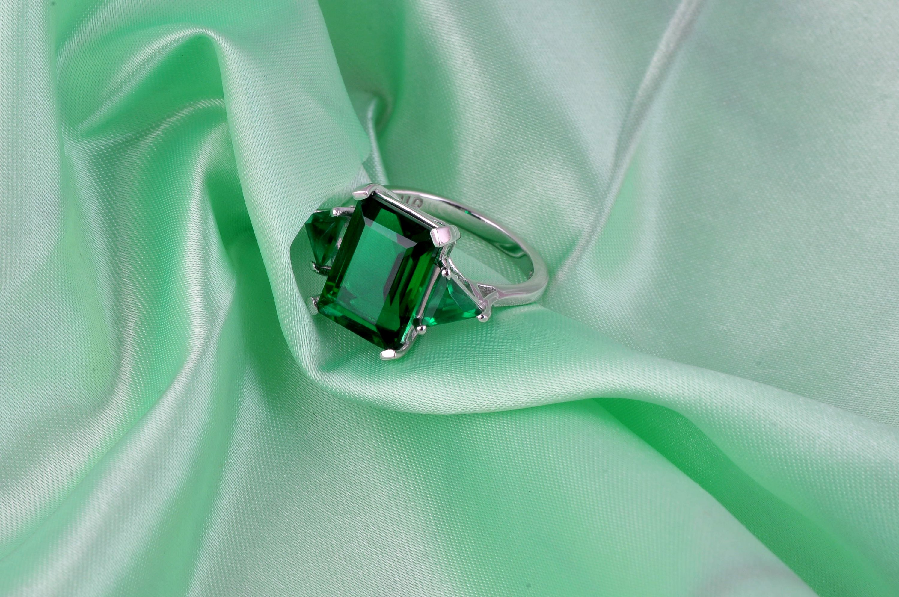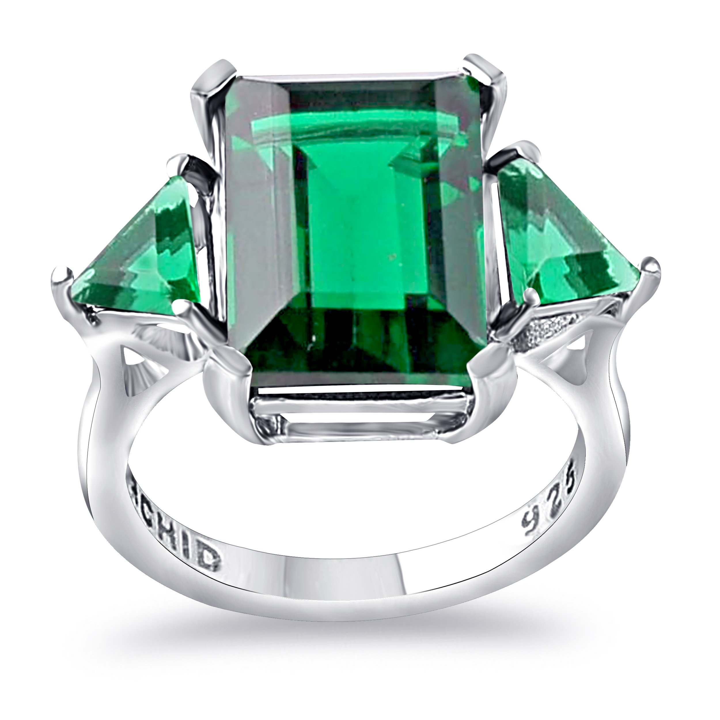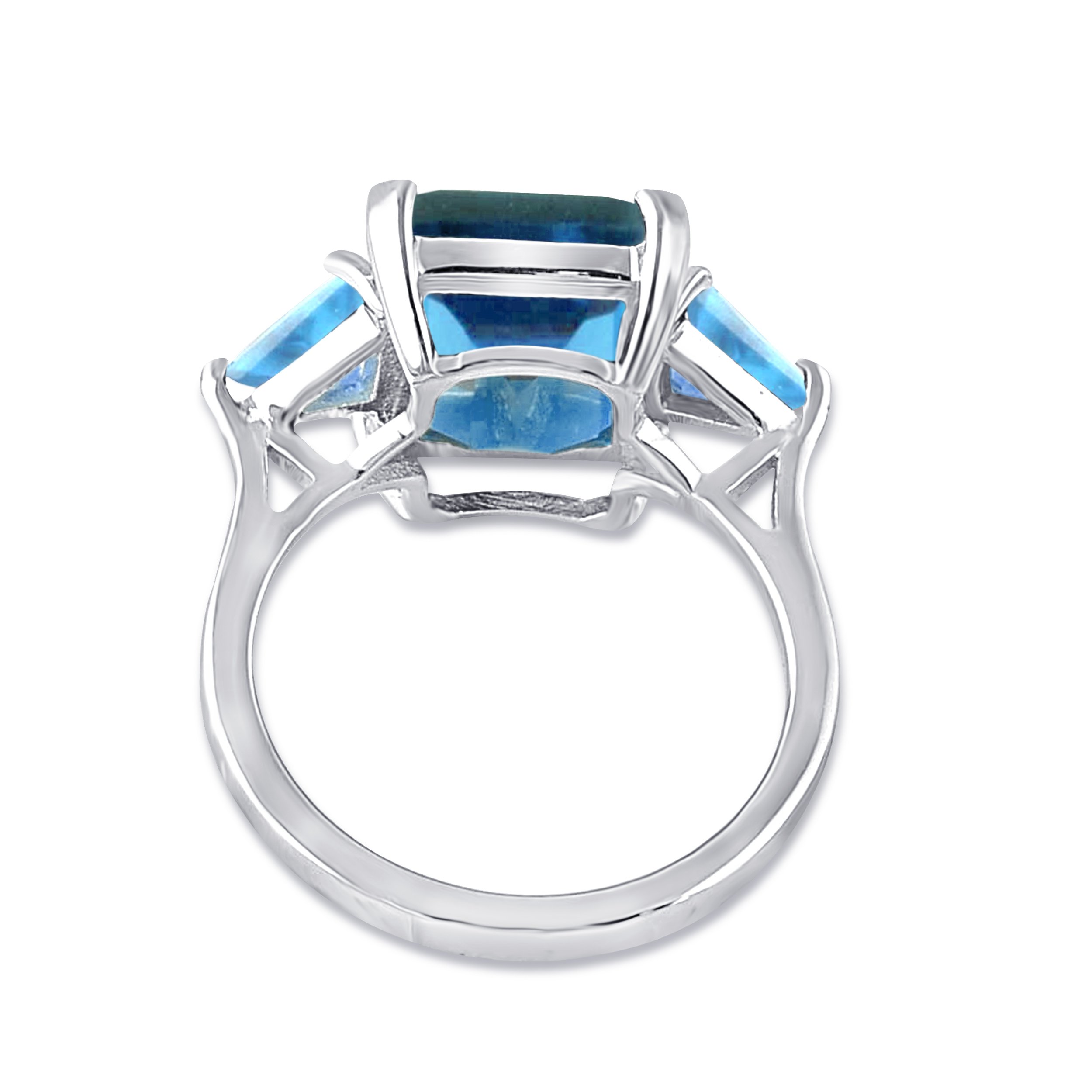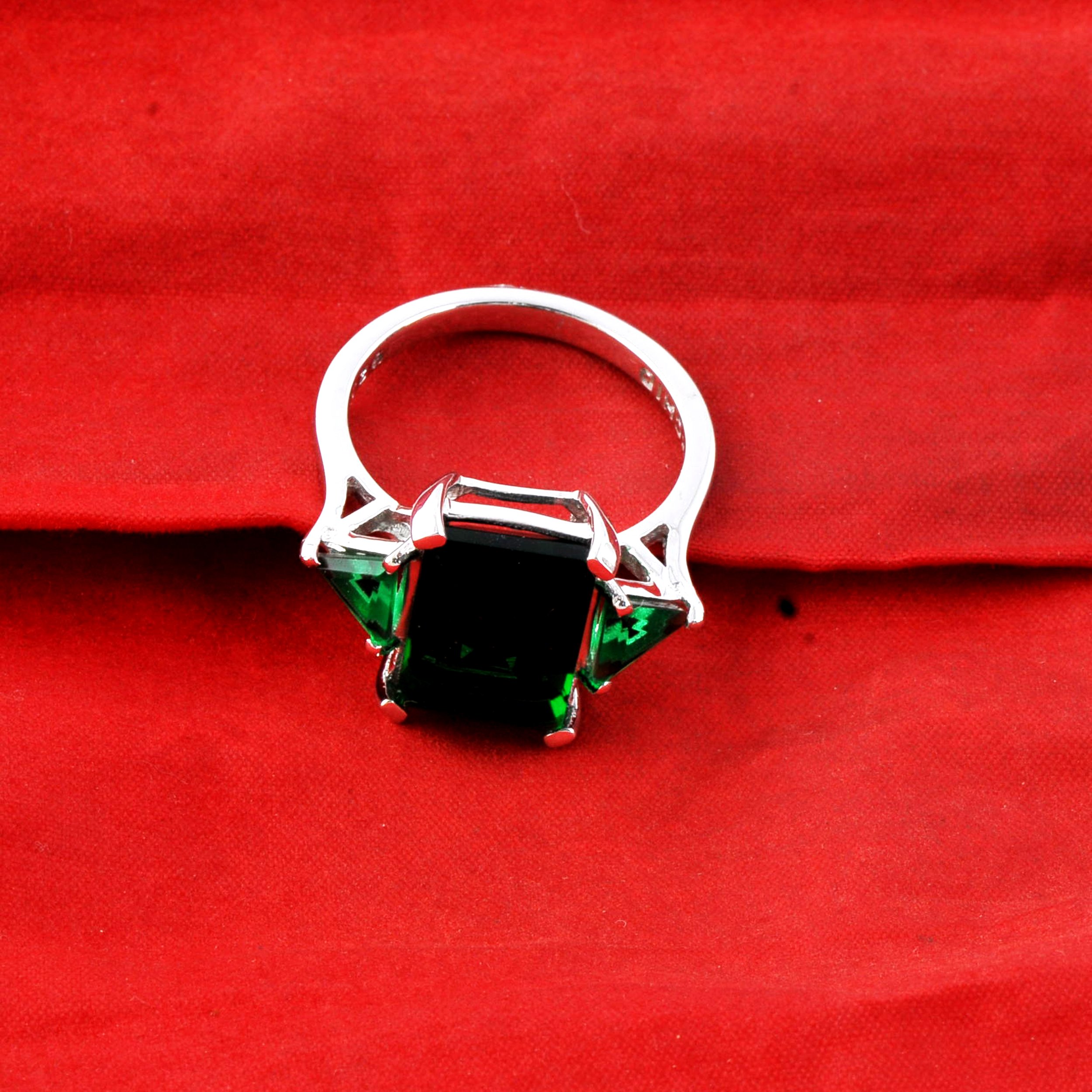 This 3-stone ring features a selection of beautiful lab-created gemstones, including Emerald, Peridot, Citrine, Garnet, Blue Topaz, Tanzanite, Sapphire, Amethyst, and White CZ. Each gemstone is carefully set using a prong setting, ensuring that they are securely held in place while allowing maximum light to pass through, enhancing their brilliance. The combination of octagon and triangle stone shapes adds a unique touch to the overall design.