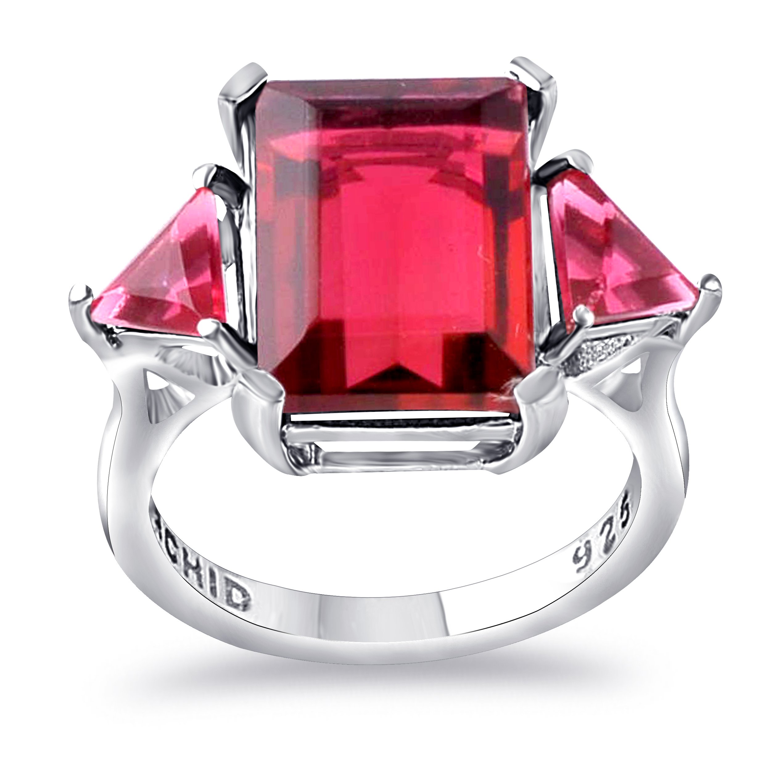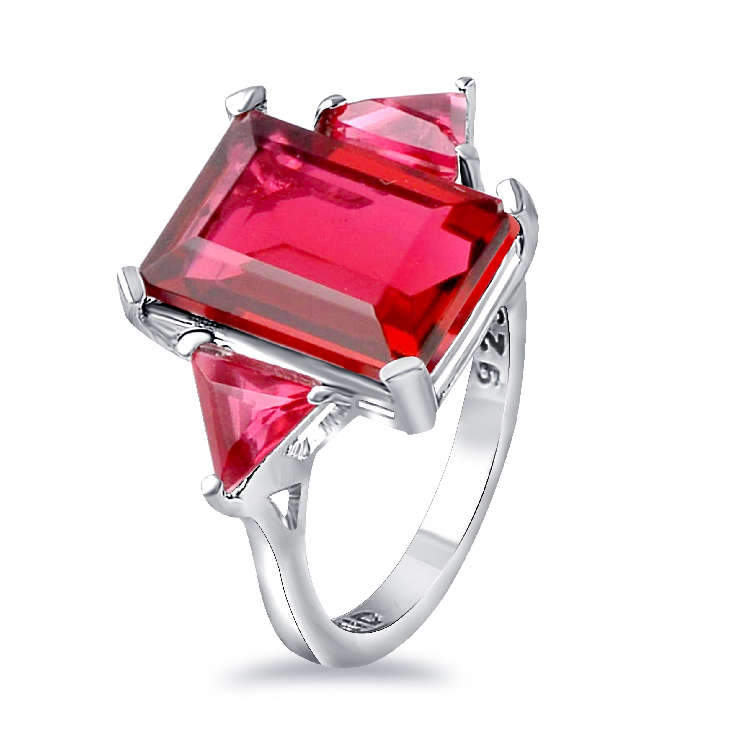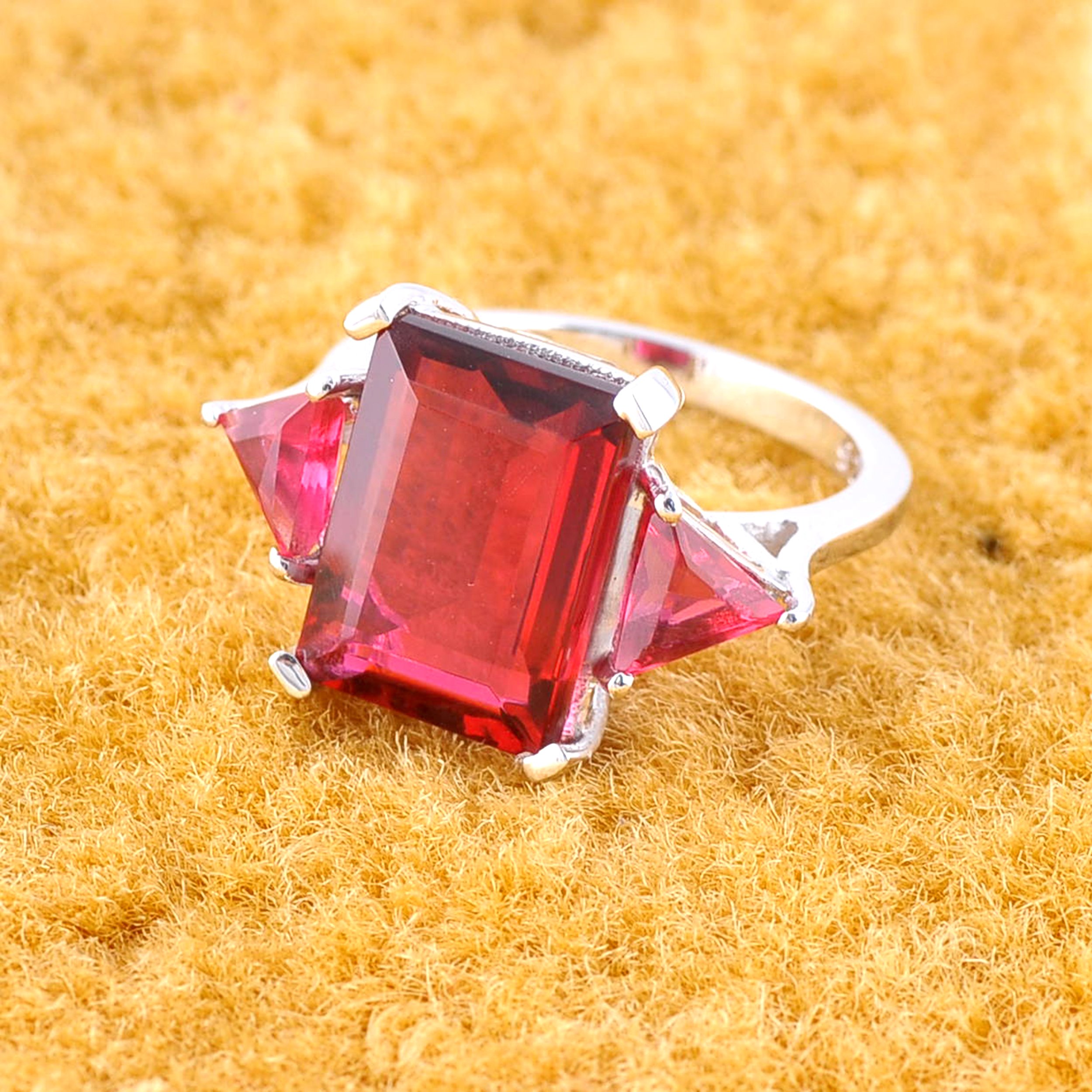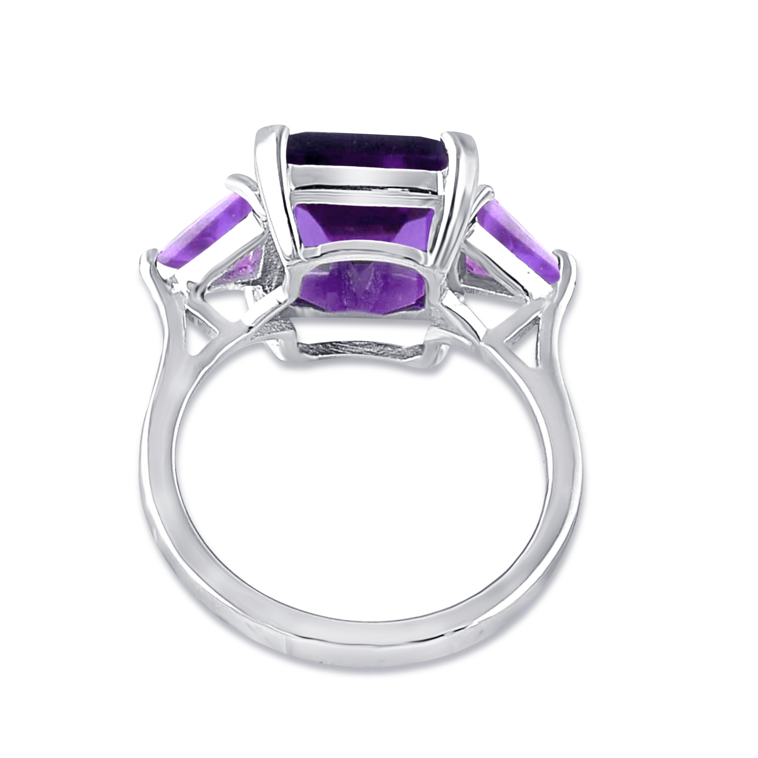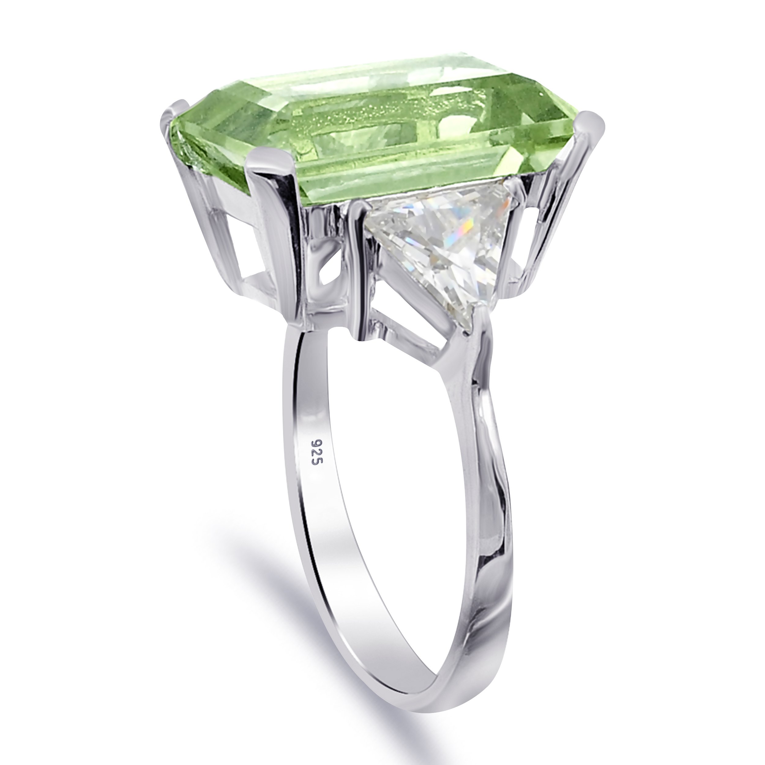 This 3-stone ring features a selection of beautiful lab-created gemstones, including Emerald, Peridot, Citrine, Garnet, Blue Topaz, Tanzanite, Sapphire, Amethyst, and White CZ. Each gemstone is carefully set using a prong setting, ensuring that they are securely held in place while allowing maximum light to pass through, enhancing their brilliance. The combination of octagon and triangle stone shapes adds a unique touch to the overall design.
