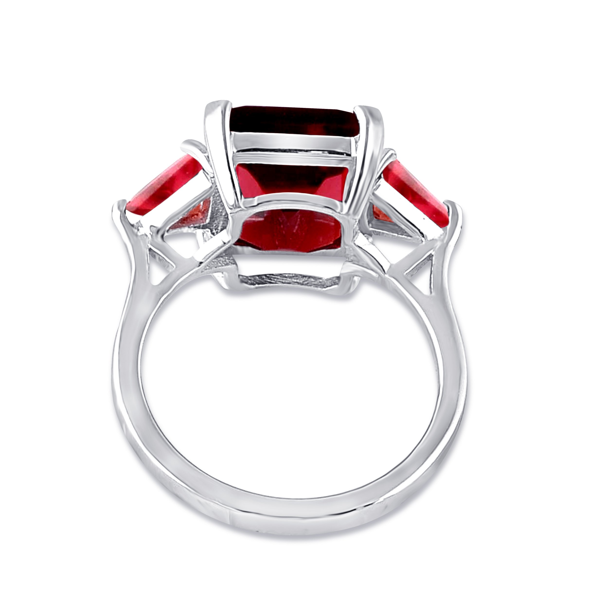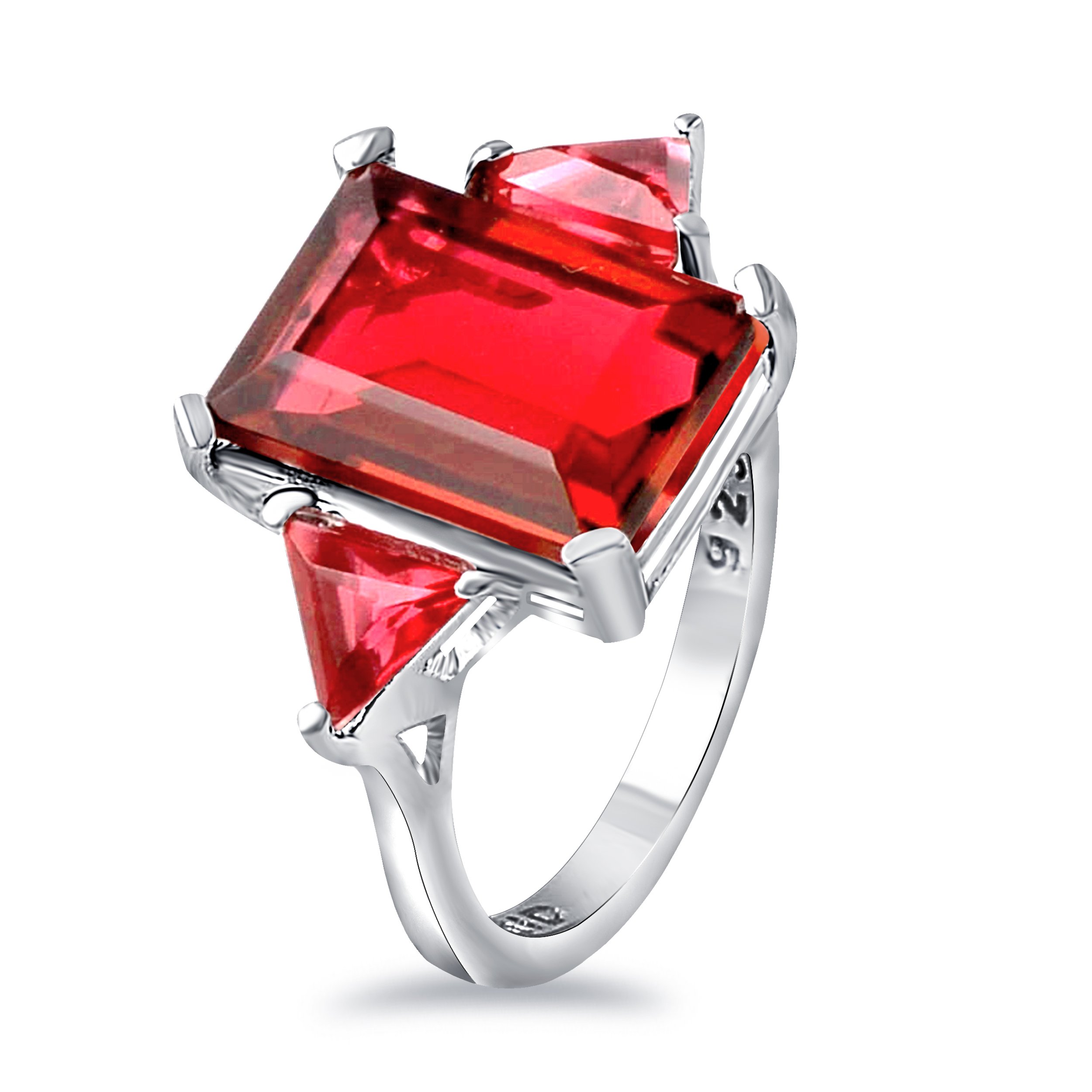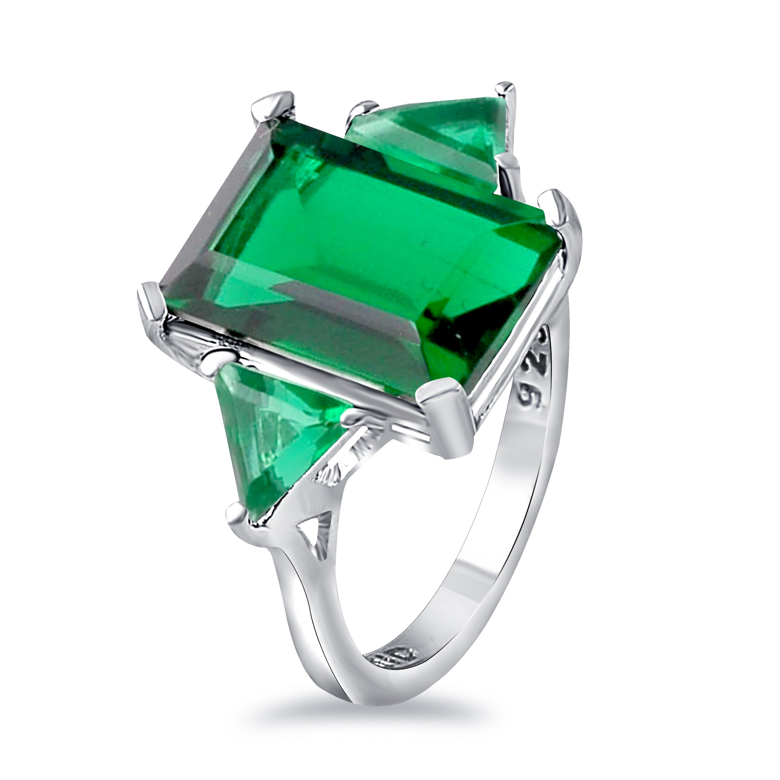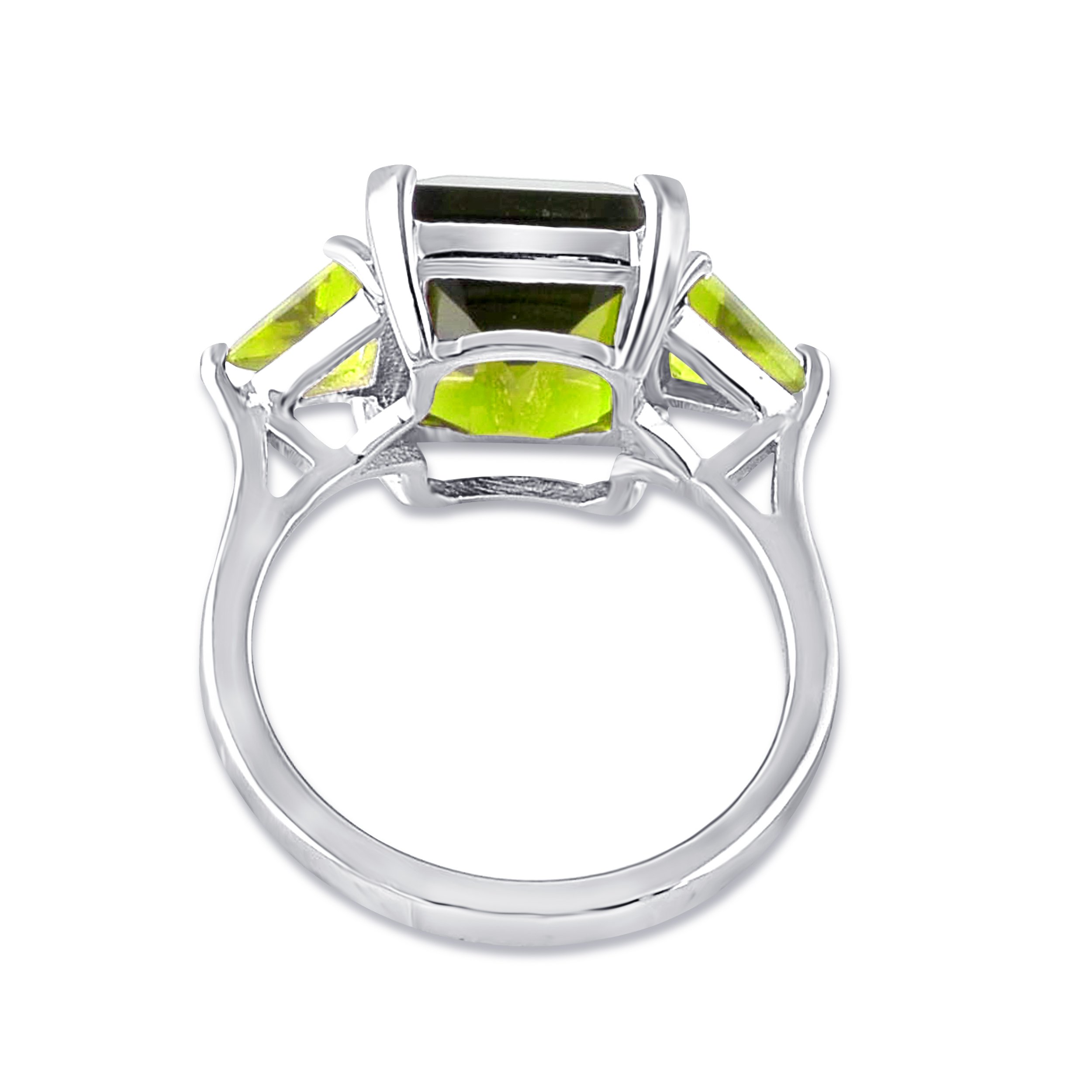 This 3-stone ring features a selection of beautiful lab-created gemstones, including Emerald, Peridot, Citrine, Garnet, Blue Topaz, Tanzanite, Sapphire, Amethyst, and White CZ. Each gemstone is carefully set using a prong setting, ensuring that they are securely held in place while allowing maximum light to pass through, enhancing their brilliance. The combination of octagon and triangle stone shapes adds a unique touch to the overall design.