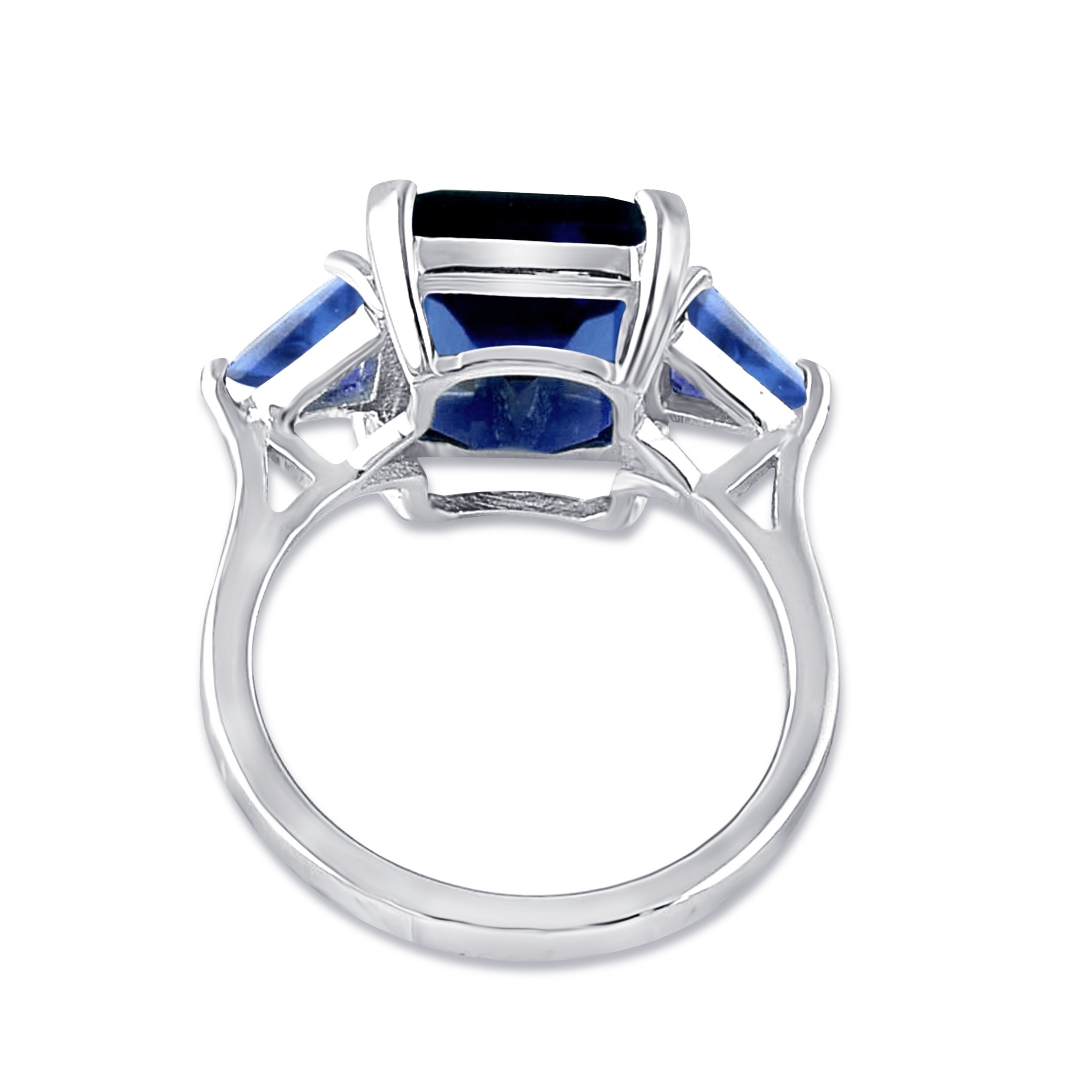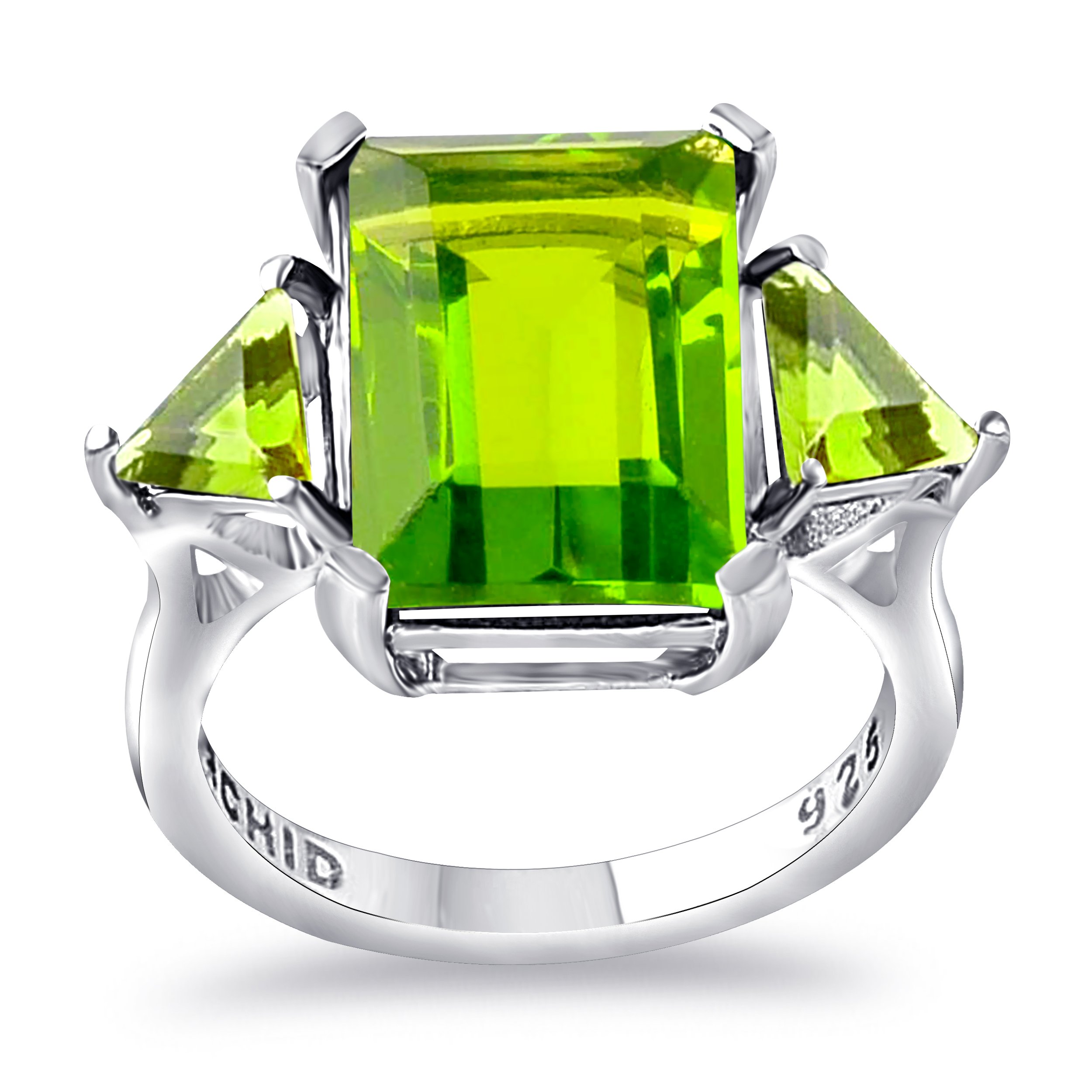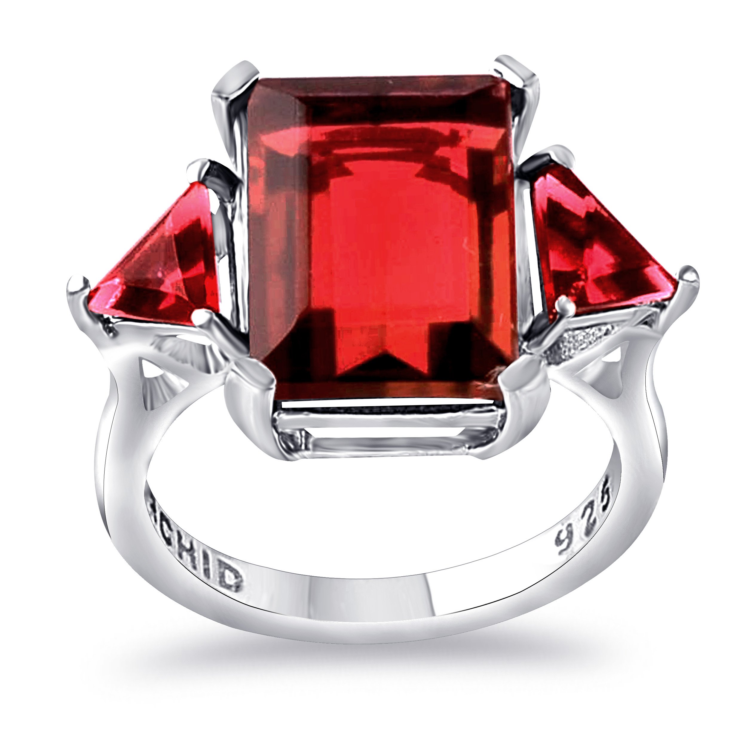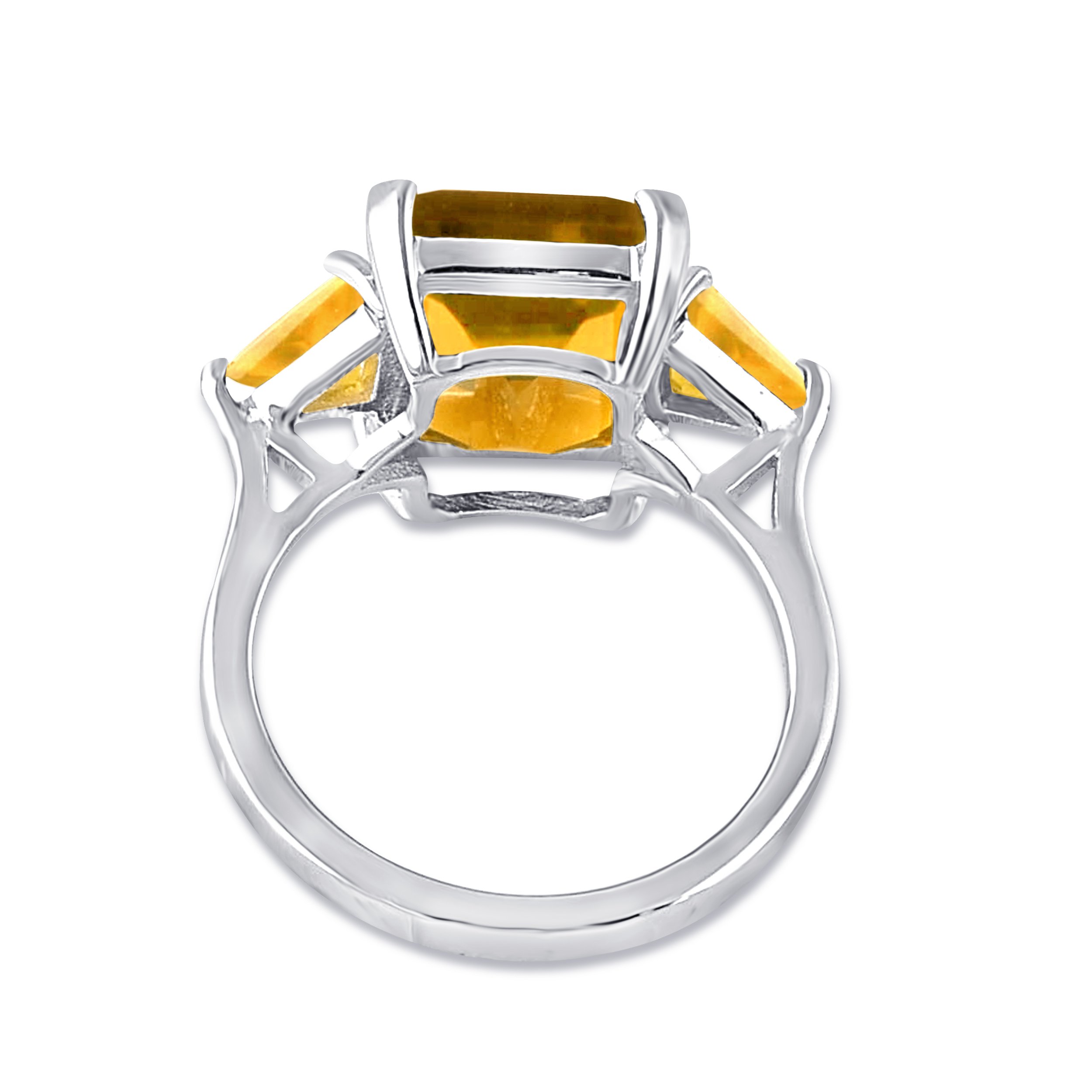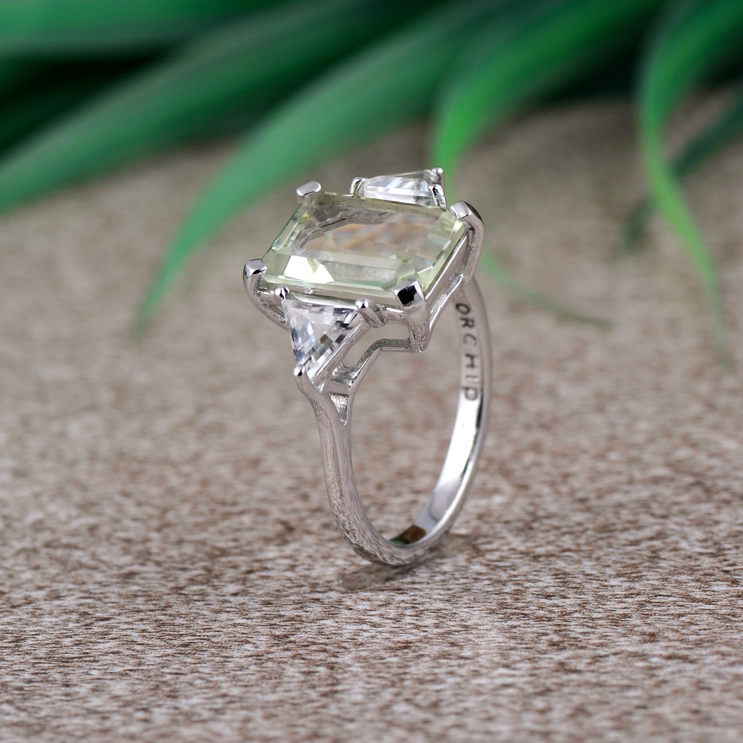 This 3-stone ring features a selection of beautiful lab-created gemstones, including Emerald, Peridot, Citrine, Garnet, Blue Topaz, Tanzanite, Sapphire, Amethyst, and White CZ. Each gemstone is carefully set using a prong setting, ensuring that they are securely held in place while allowing maximum light to pass through, enhancing their brilliance. The combination of octagon and triangle stone shapes adds a unique touch to the overall design.