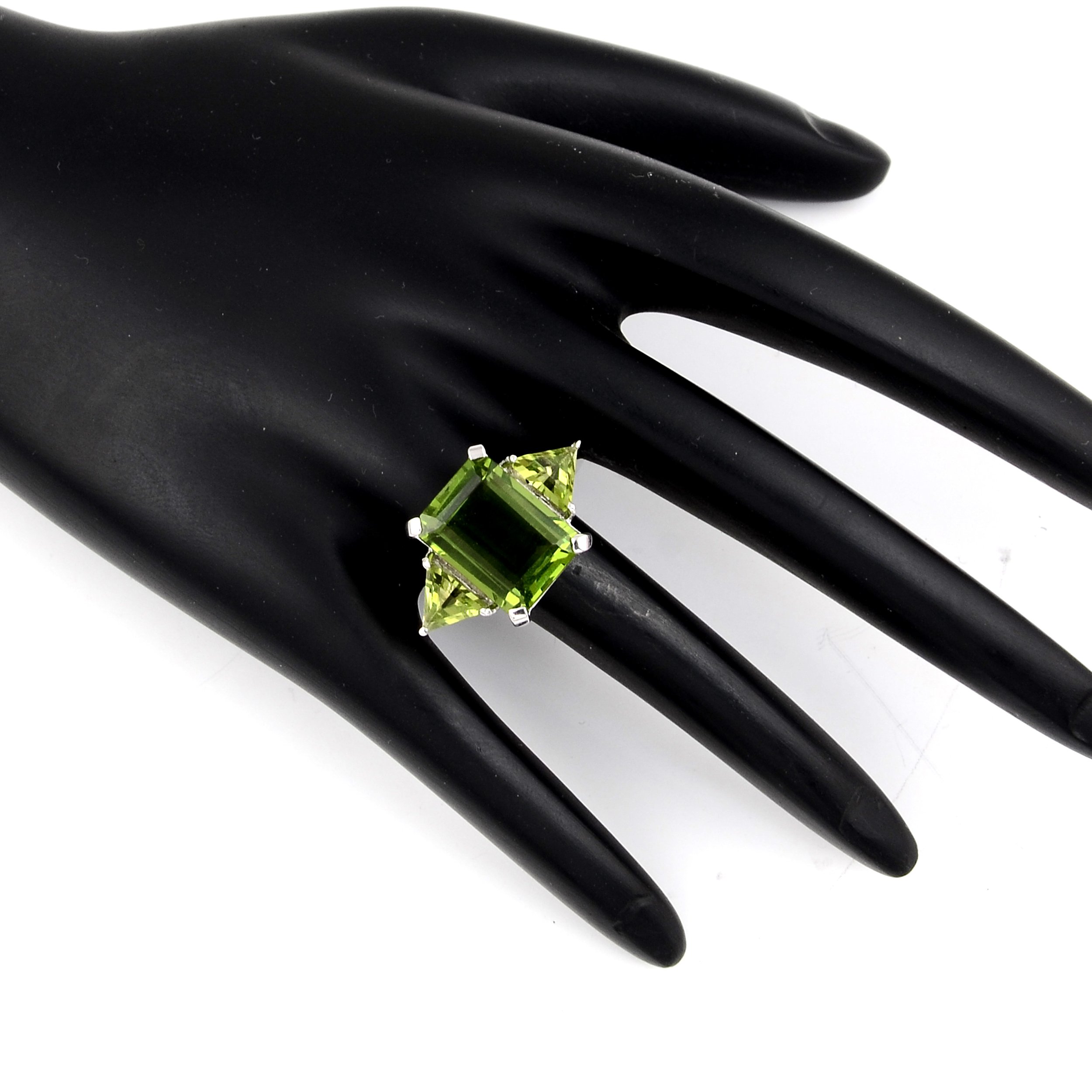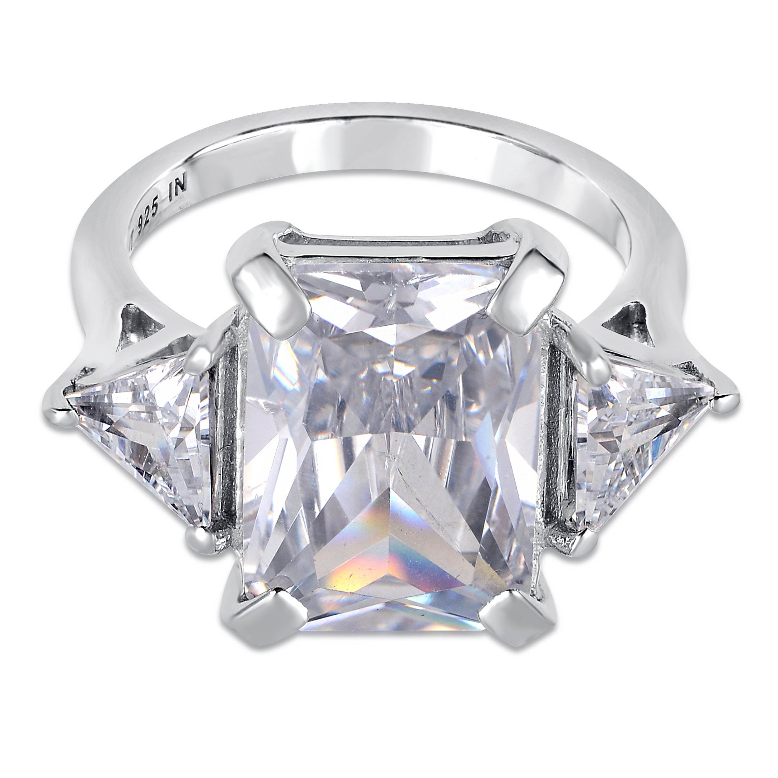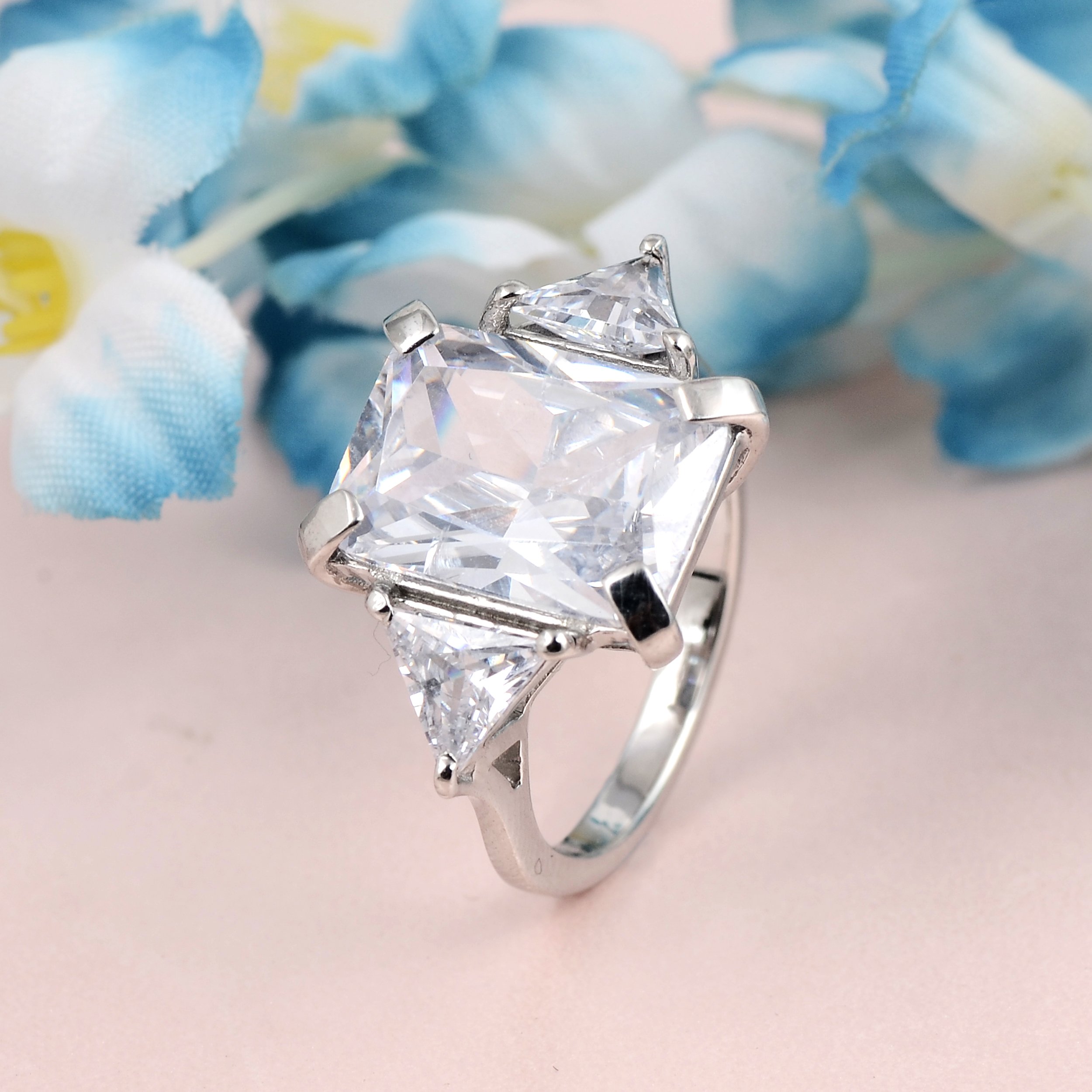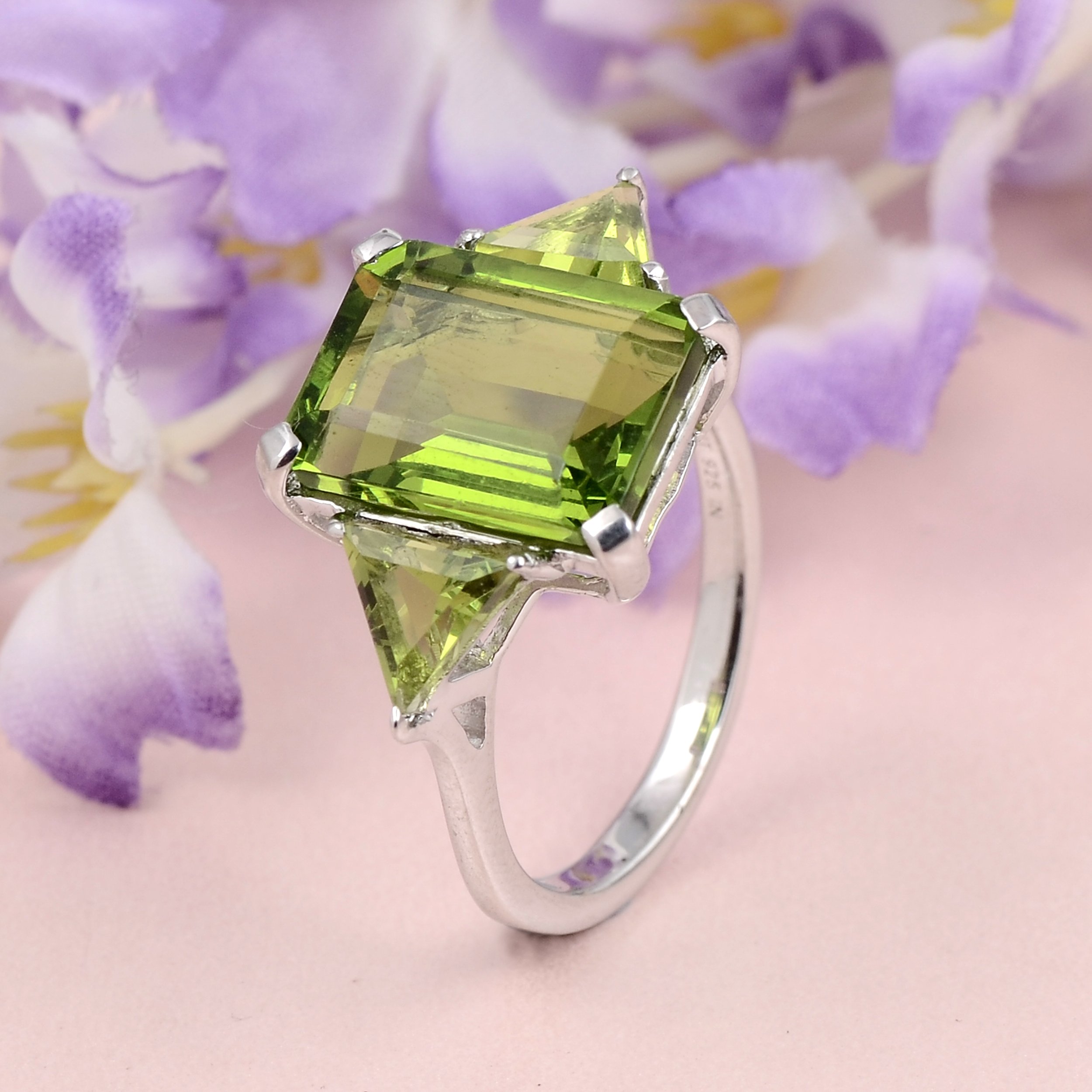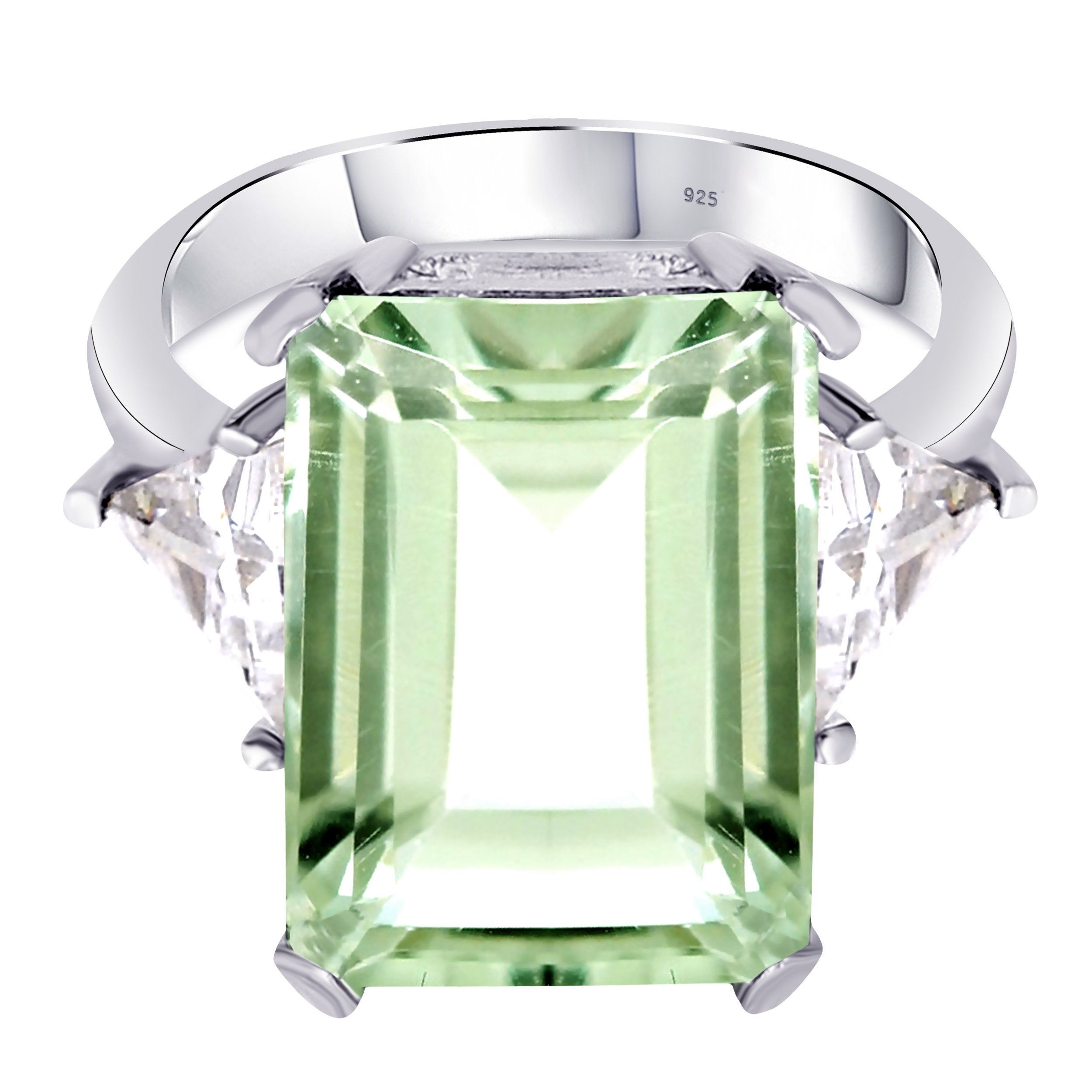 This 3-stone ring features a selection of beautiful lab-created gemstones, including Emerald, Peridot, Citrine, Garnet, Blue Topaz, Tanzanite, Sapphire, Amethyst, and White CZ. Each gemstone is carefully set using a prong setting, ensuring that they are securely held in place while allowing maximum light to pass through, enhancing their brilliance. The combination of octagon and triangle stone shapes adds a unique touch to the overall design.