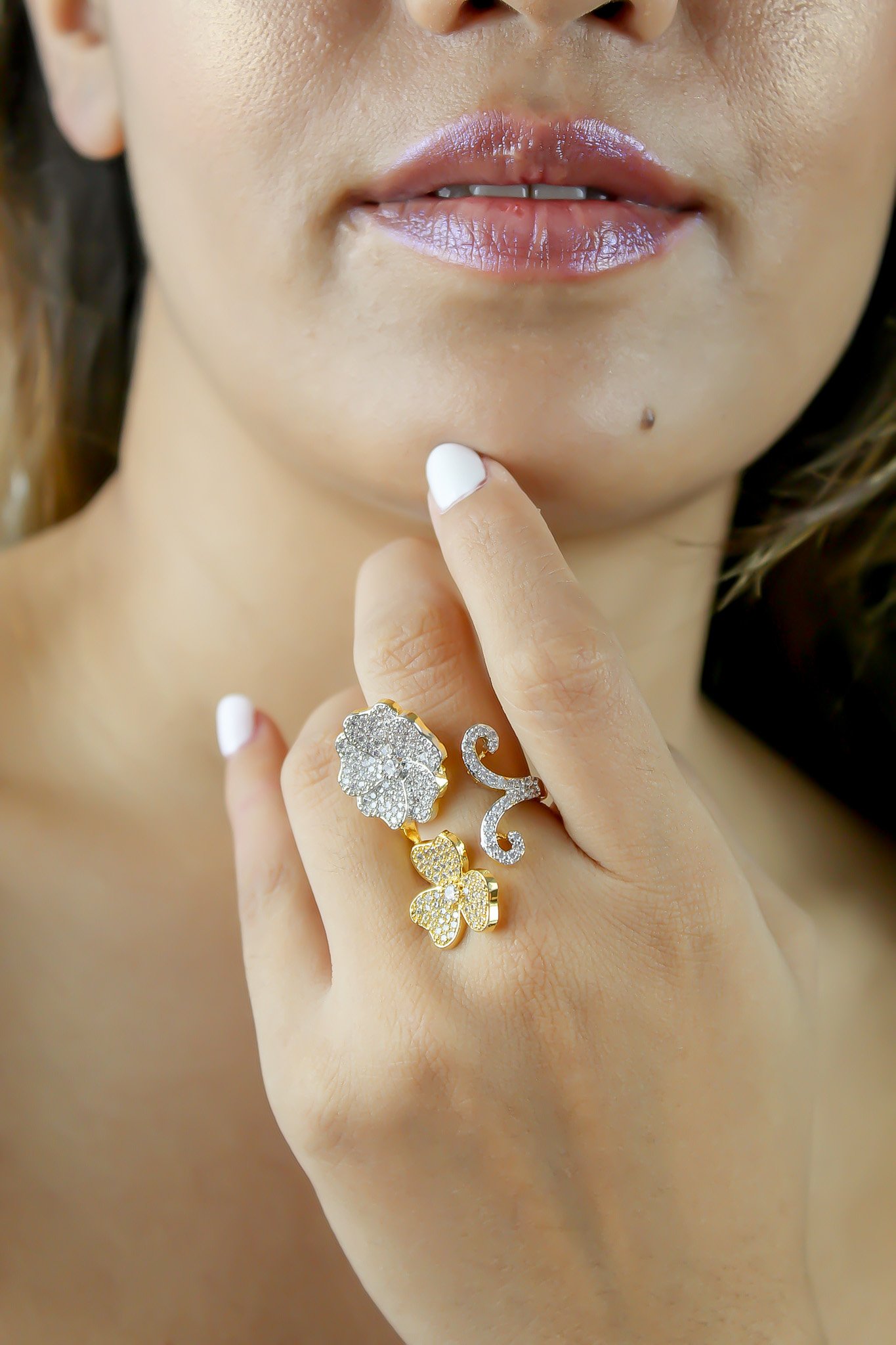 This ring features intricate floral motifs that are beautifully encrusted with zircons, adding a sparkle that is sure to turn heads. The unique design of the Dhalia Ring not only makes it a statement piece but also a reflection of your personal style. Each ring is crafted with attention to detail, ensuring that you receive a product that is both beautiful and durable.