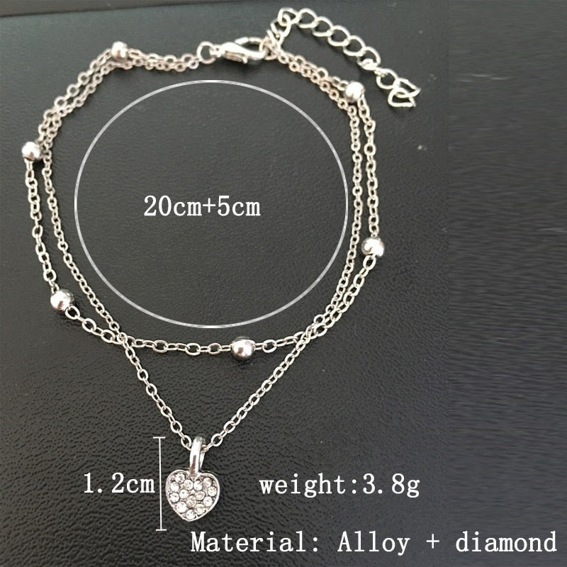Introducing our stunning Double Silver Ankle Chain Heart Ankle Bracelet, a must-have accessory for any jewelry lover. This exquisite anklet features a unique design that combines two beautiful chains, one adorned with a charming heart and the other embellished with delicate beads. Perfect for festivals, beach outings, or simply adding a touch of elegance to your everyday attire, this anklet is sure to turn heads.