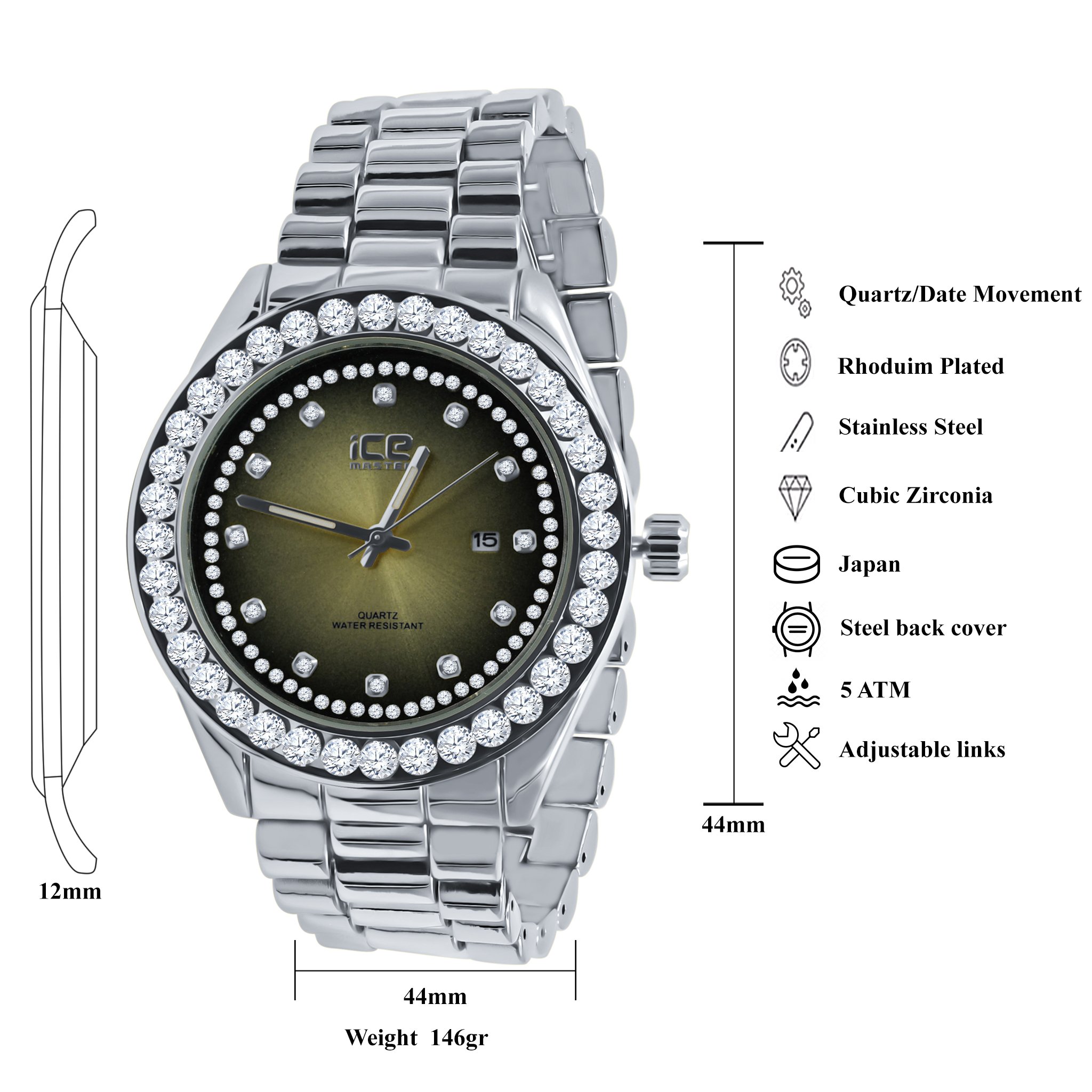 The DYNASTY watch has a width of 12 MM and a length of 44 MM, making it a bold accessory that commands attention. Its size is perfect for those who prefer a larger watch face that is easy to read and makes a statement.