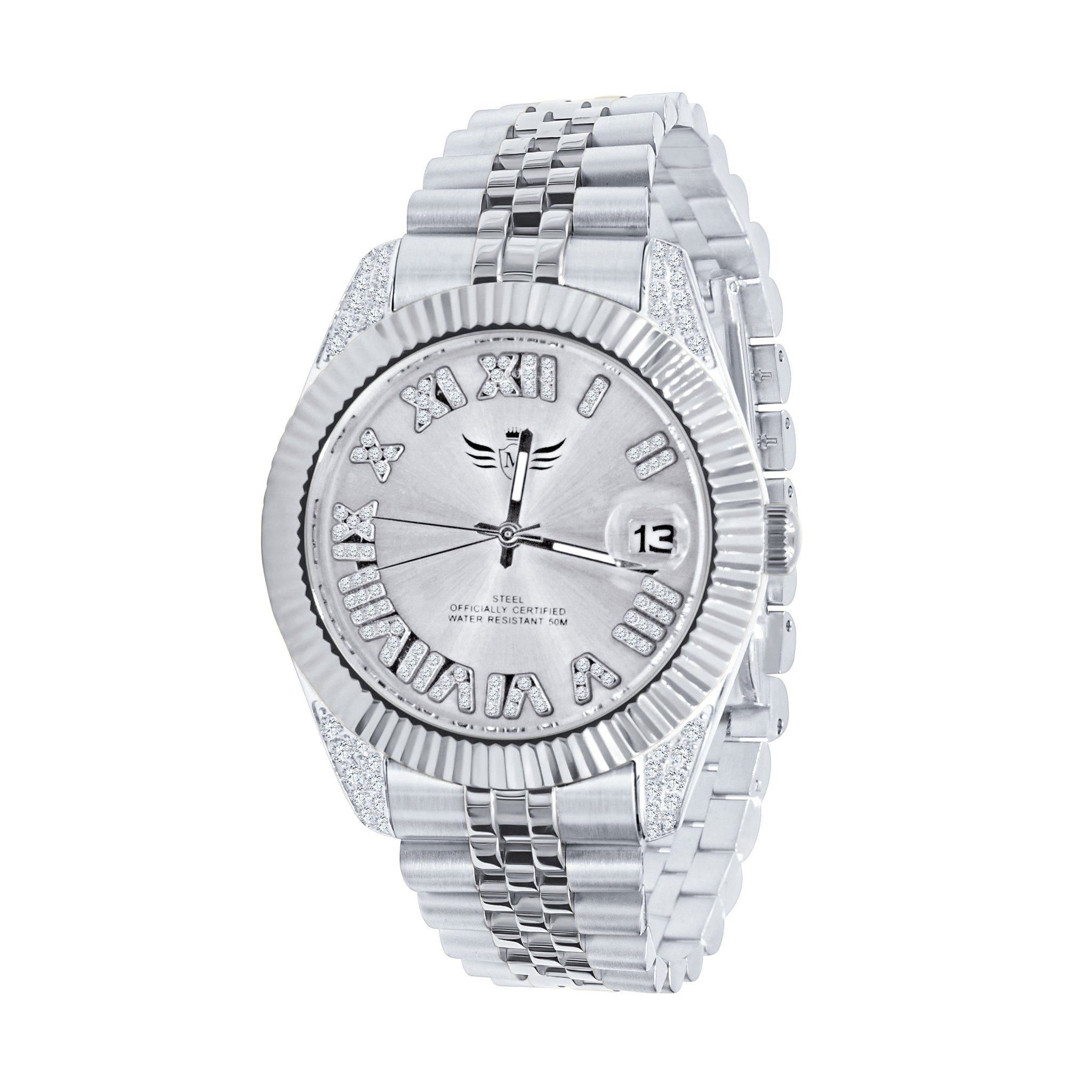 Assembled with great precision, the EARL Steel Watch features a beautifully crafted dial that showcases striking Roman numerals. Each numeral is adorned with minute crystal clear stones, adding a touch of glamour to the overall design. The attention to detail in the craftsmanship ensures that this watch stands out in any setting.