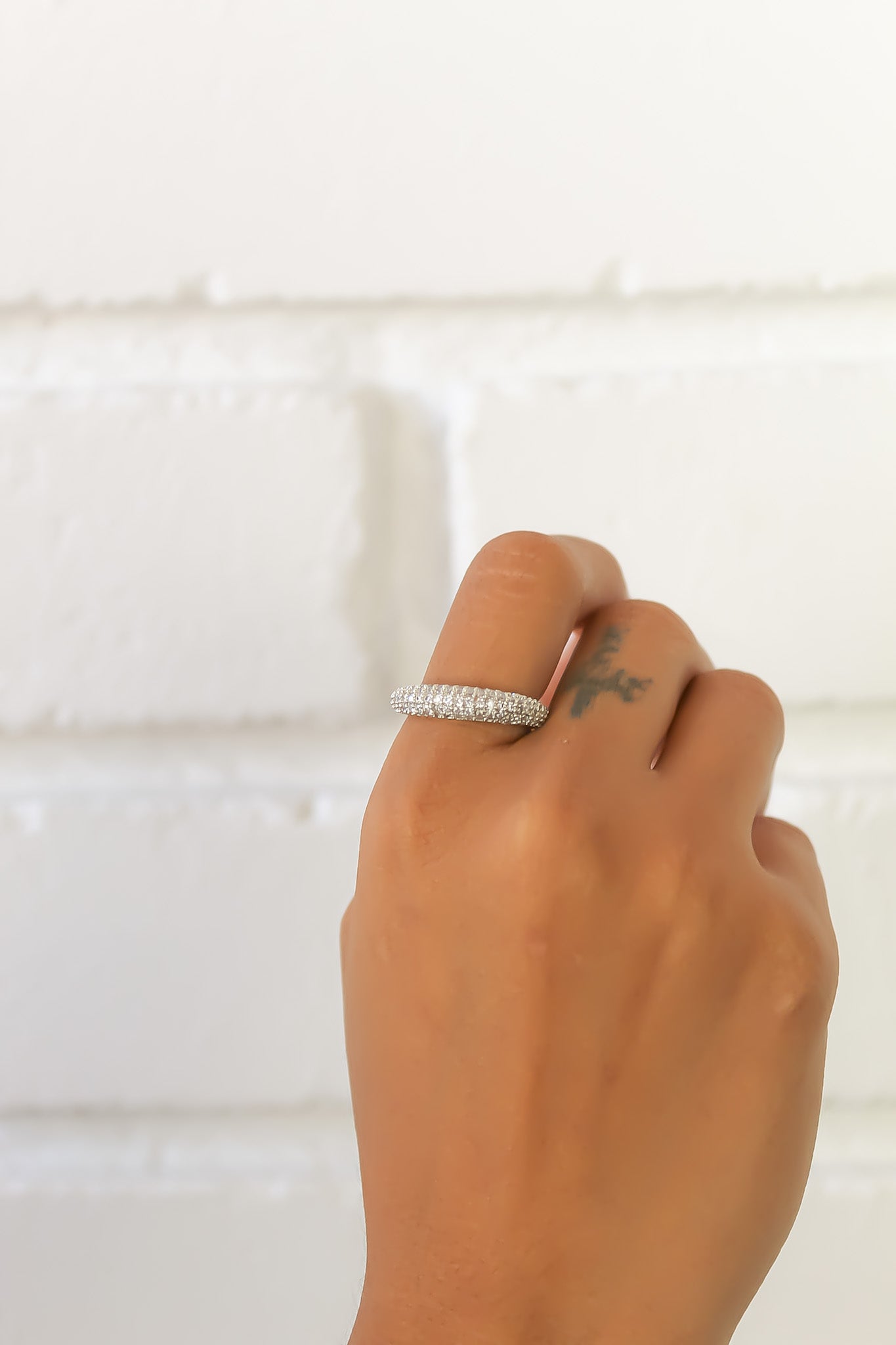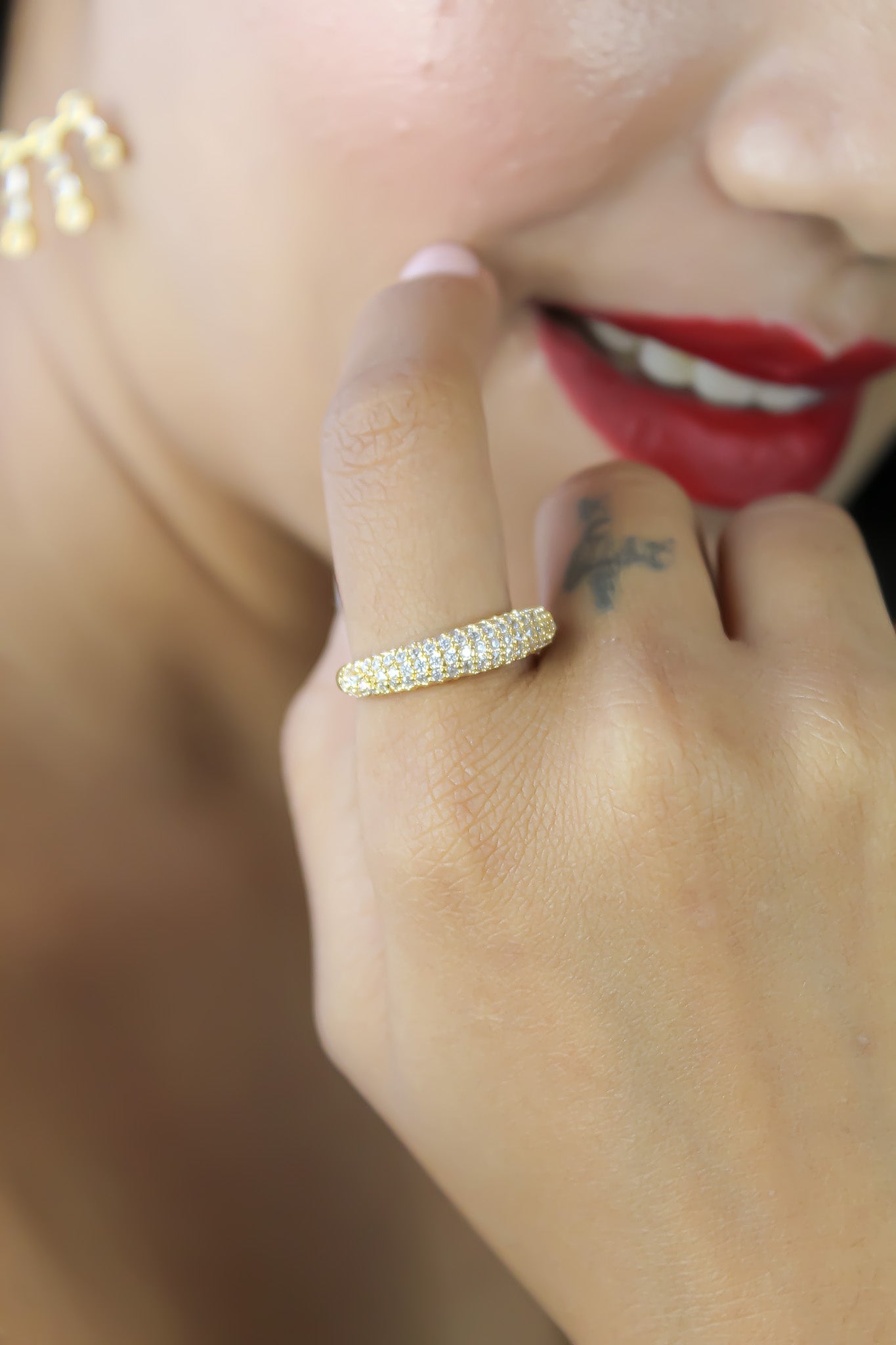 The Eixample Ring is a stunning piece of jewelry that combines elegance and versatility. Crafted with high-quality zirconia stones, this ring is designed to catch the eye and elevate any outfit. Whether you're dressing up for a special occasion or looking to add a touch of glamour to your everyday wear, the Eixample Ring is the perfect accessory.