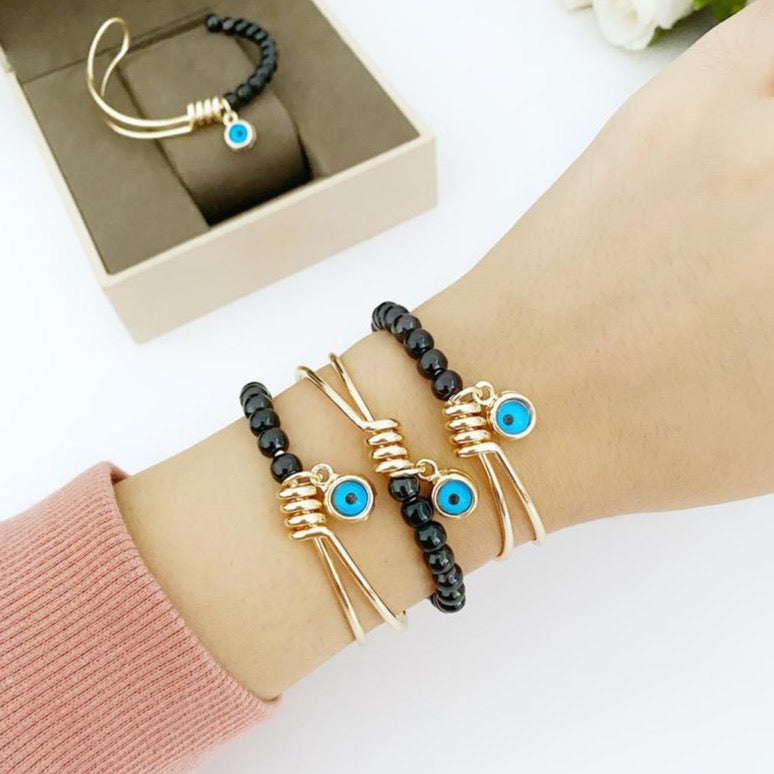 Each Elegant Evil Eye Bracelet is meticulously handmade, ensuring that every piece is unique. The craftsmanship involved in creating this bracelet reflects a commitment to quality and attention to detail. The combination of gold color and black seed beads adds a touch of elegance, making it suitable for various occasions, from casual outings to formal events.