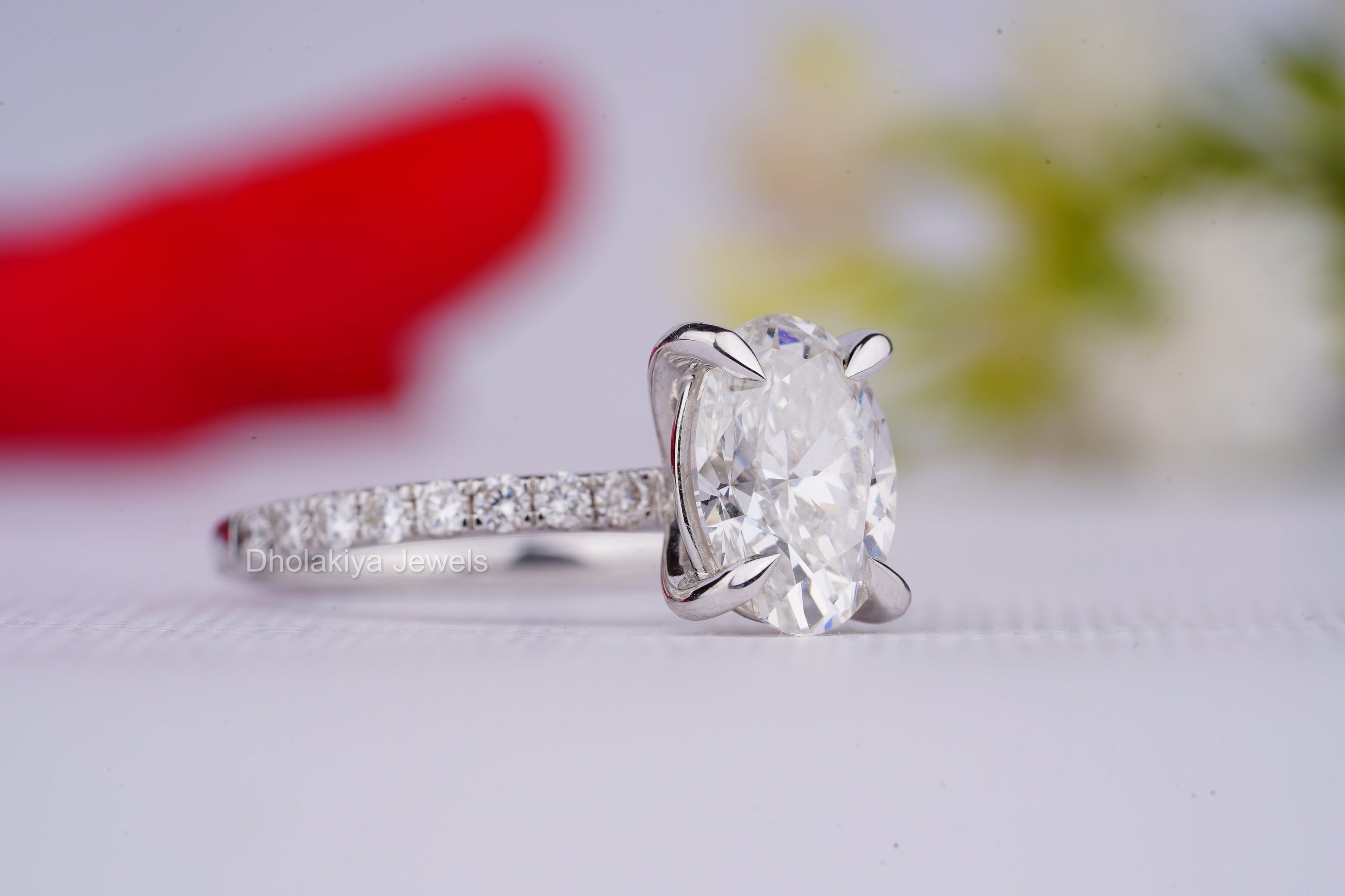 Each Elegant Oval Cut Engagement Ring is expertly crafted with meticulous attention to detail. The ring features a total diamond weight of 3.00 CT, ensuring that it captures light beautifully from every angle. The use of high-quality materials and skilled craftsmanship guarantees that this ring will stand the test of time, just like your love.