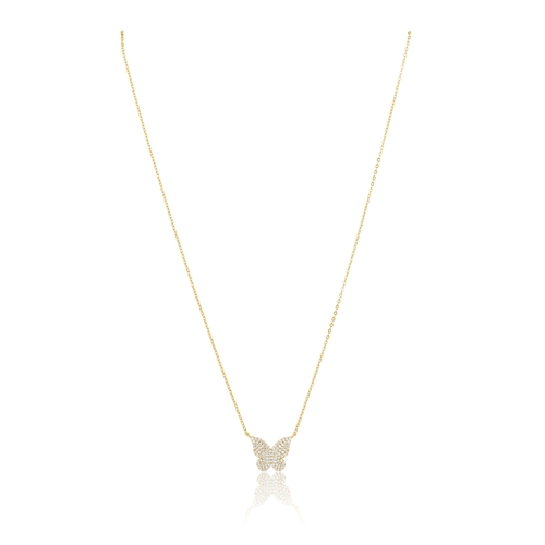 Crafted with care, the Elsie Pave Butterfly Necklace features 14k gold plating over sterling silver. This combination not only ensures durability but also provides a luxurious look that is sure to impress. The gold plating gives the necklace a warm, rich tone that complements the sparkle of the CZ stones, making it a versatile piece that can be worn with various outfits.