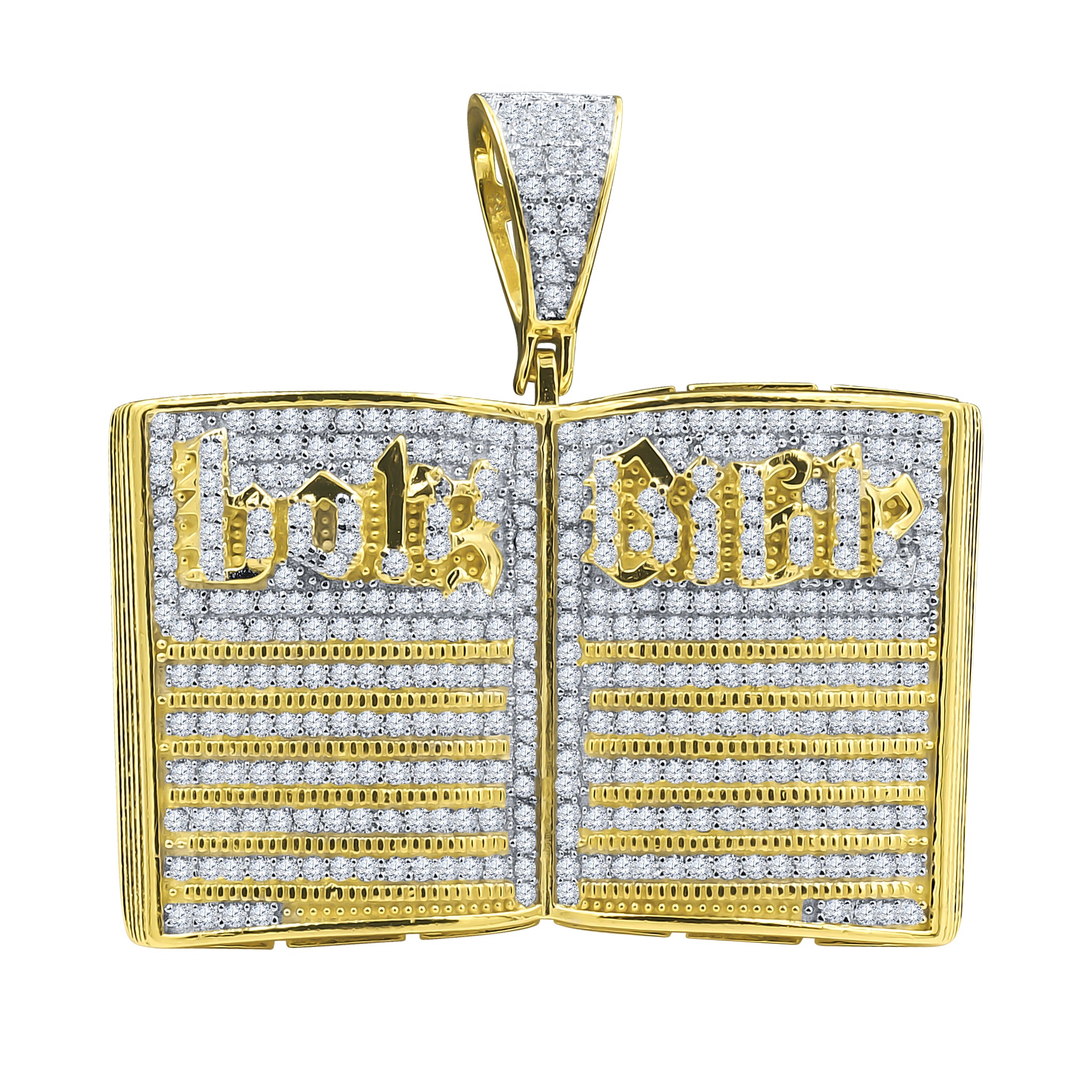 The locket features a unique design that resembles a book, symbolizing the importance of scripture and the teachings of God. It is embellished with dazzling cubic zircon stones that catch the light beautifully, making it a perfect accessory for both casual and formal occasions. The intricate detailing and the glimmering stones create a captivating visual appeal that is sure to attract attention.