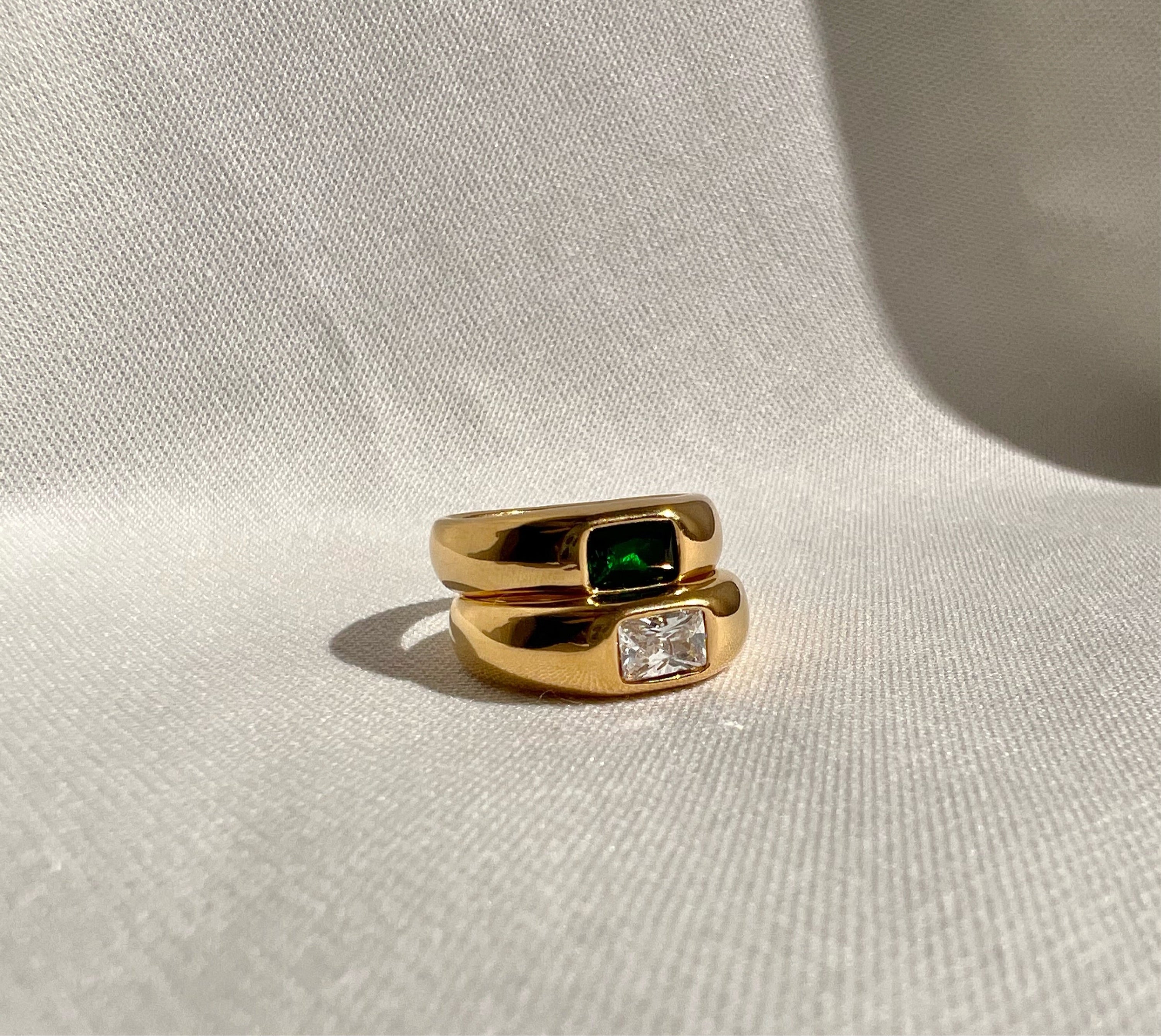 Choosing the Emerald Statement Ring means investing in a piece of jewelry that is not only beautiful but also practical. Its hypoallergenic and tarnish-resistant features ensure that it remains a staple in your collection for years to come. Whether you're dressing up for a night out or adding a touch of elegance to your everyday wear, this ring is the perfect choice.