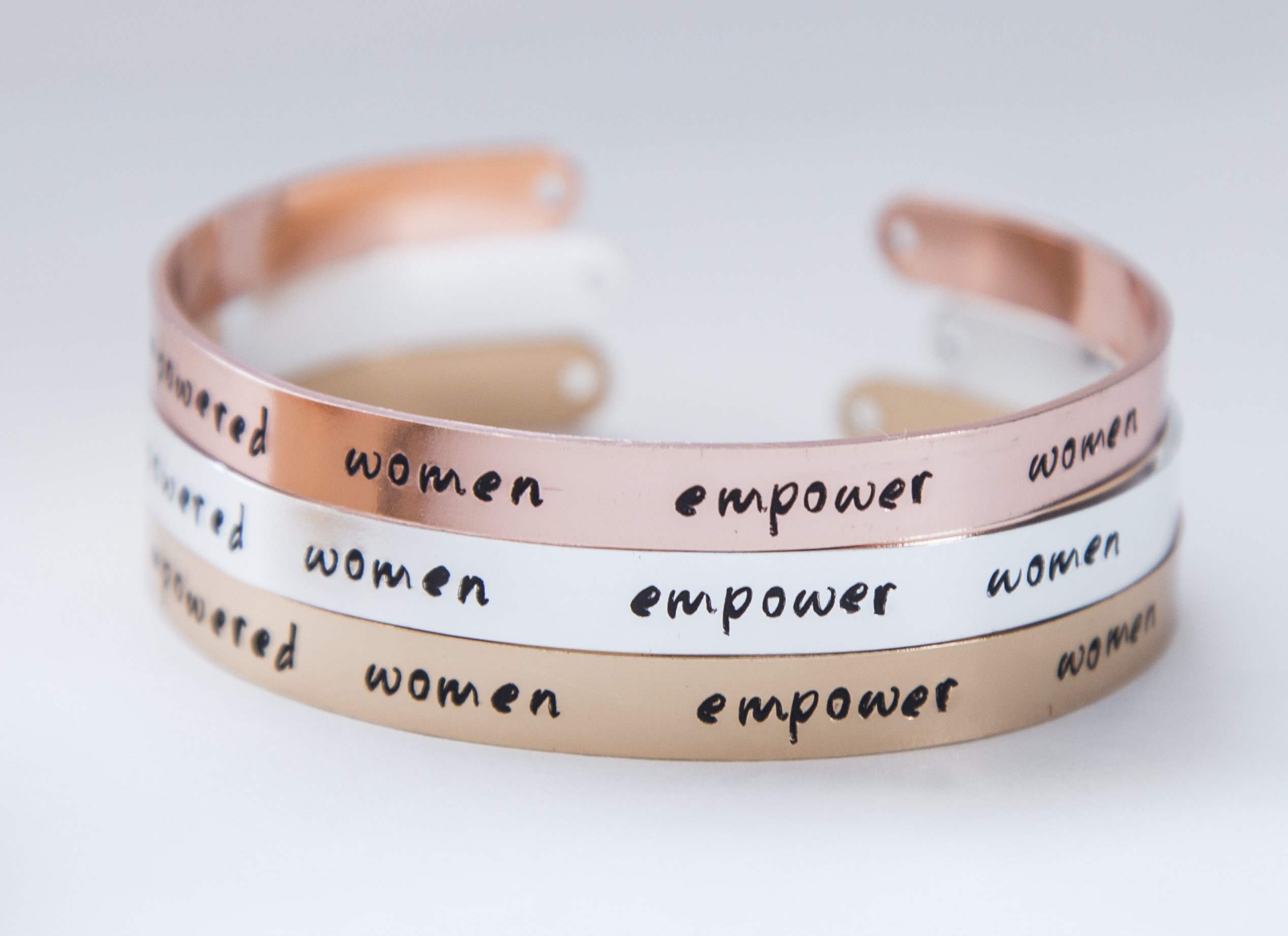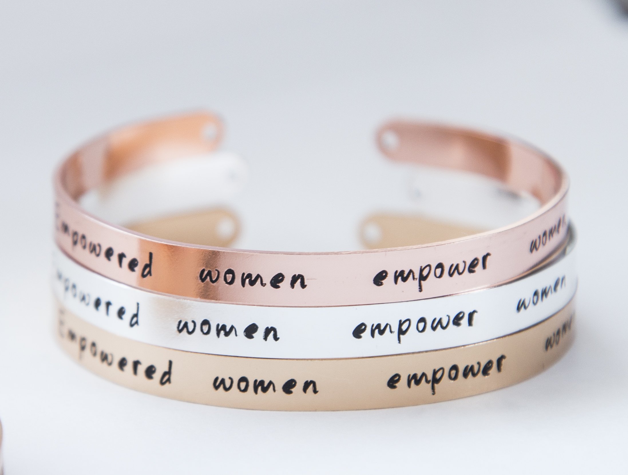 What sets our Empowered Women Jewelry apart is the unique handmade touch. Each letter is hand-stamped one at a time, which means that no two bracelets are exactly alike. This artisanal approach lends itself to a charming, one-of-a-kind look that celebrates individuality. While the letters may not be perfectly straight or centered, this adds to the character and authenticity of the piece, making it a true reflection of the wearer’s personality.