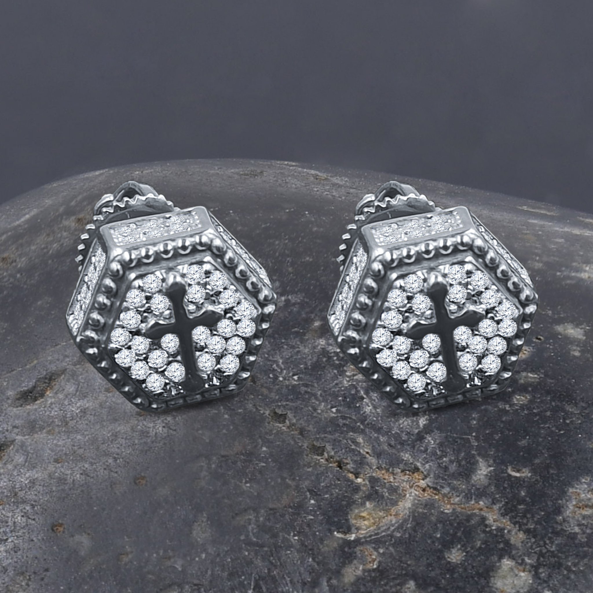 Each pair of Ethereal Silver Earrings features exquisite craftsmanship, highlighted by the use of Grade AAA high-quality cubic zircon stones. These stones are known for their brilliance and clarity, making them a perfect alternative to diamonds. The earrings are designed with a unique cross symbol, adding a touch of sacredness and individuality to your look.