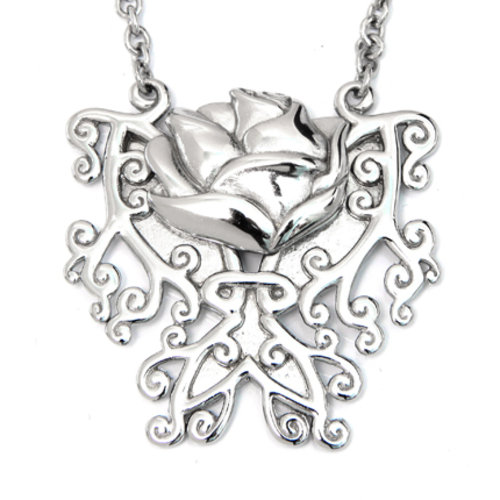 Reflect your dark and romantic side with this rose necklace. Only the complexities of the heart can compare with the intricate vine detailing, made with a high level of craftsmanship. 316L Stainless SteelPouch included Pendant Size: W: 1.55" H: 1.57"Chain Length: 18" plus 2" extender