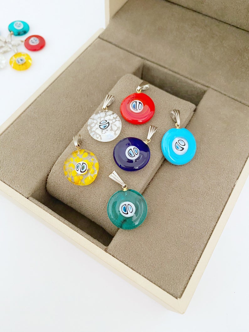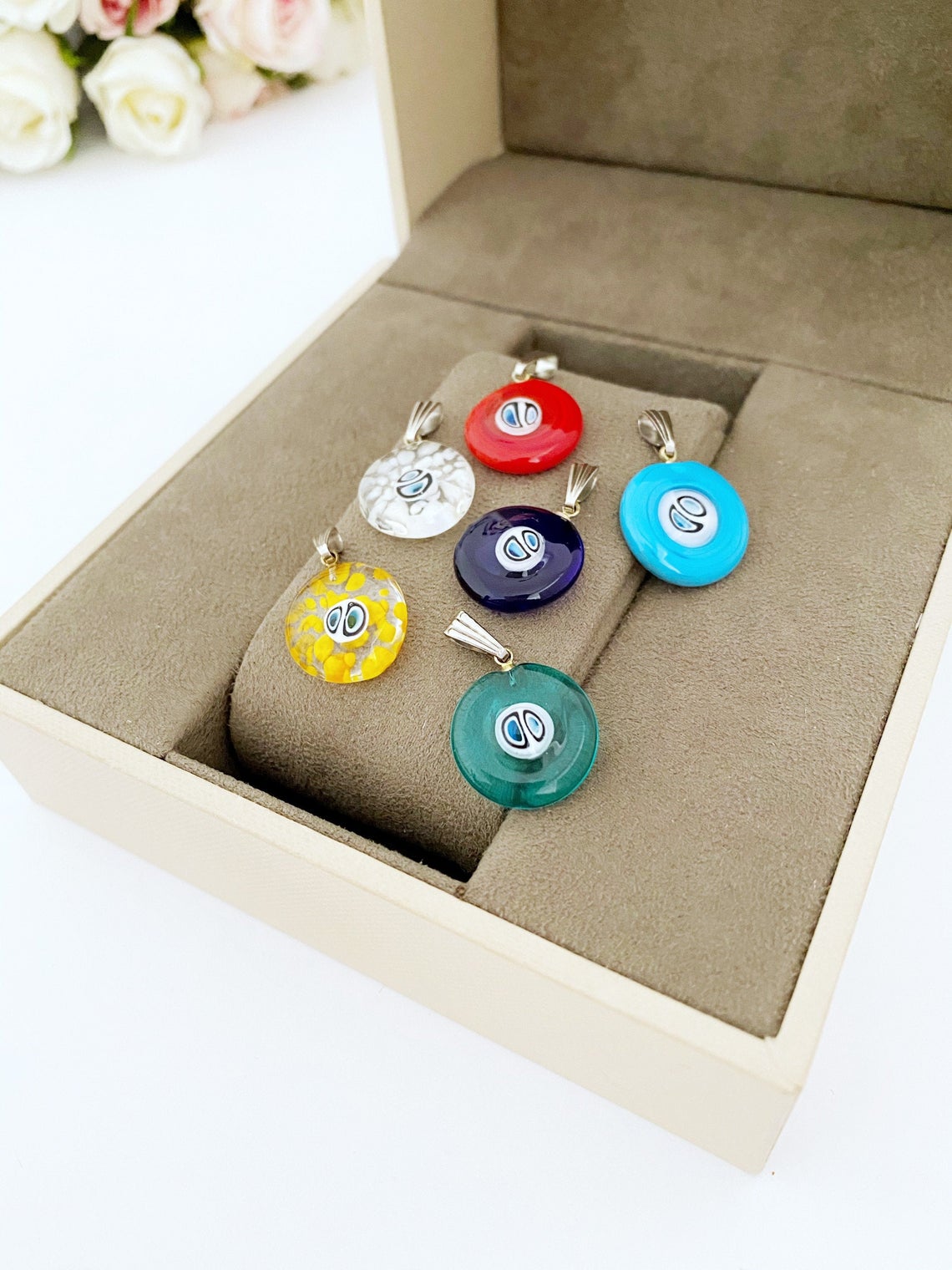 Elevate your jewelry collection with our stunning Murano Glass Evil Eye Necklace. With its beautiful design, meaningful symbolism, and handcrafted quality, it’s a piece that you will treasure. Choose your favorite color and enjoy the blend of style and protection that this necklace offers.