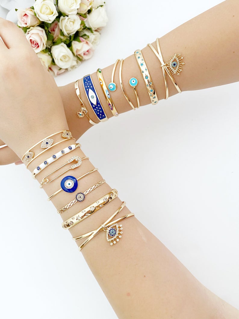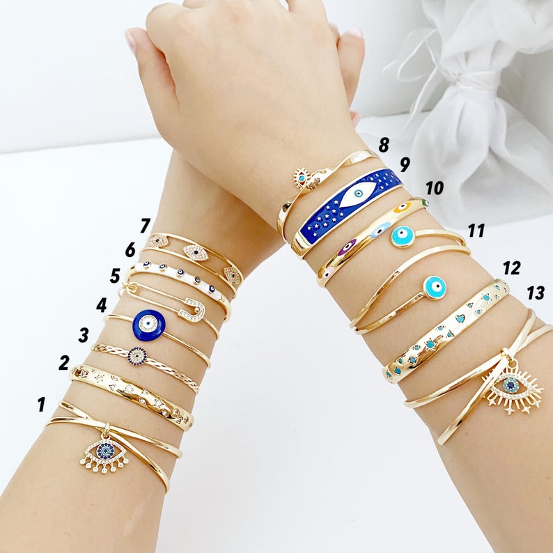 Dropship Evil Eye Bracelet, Cuff Bracelet, Evil Eye Jewelry, Gold Bracelet,