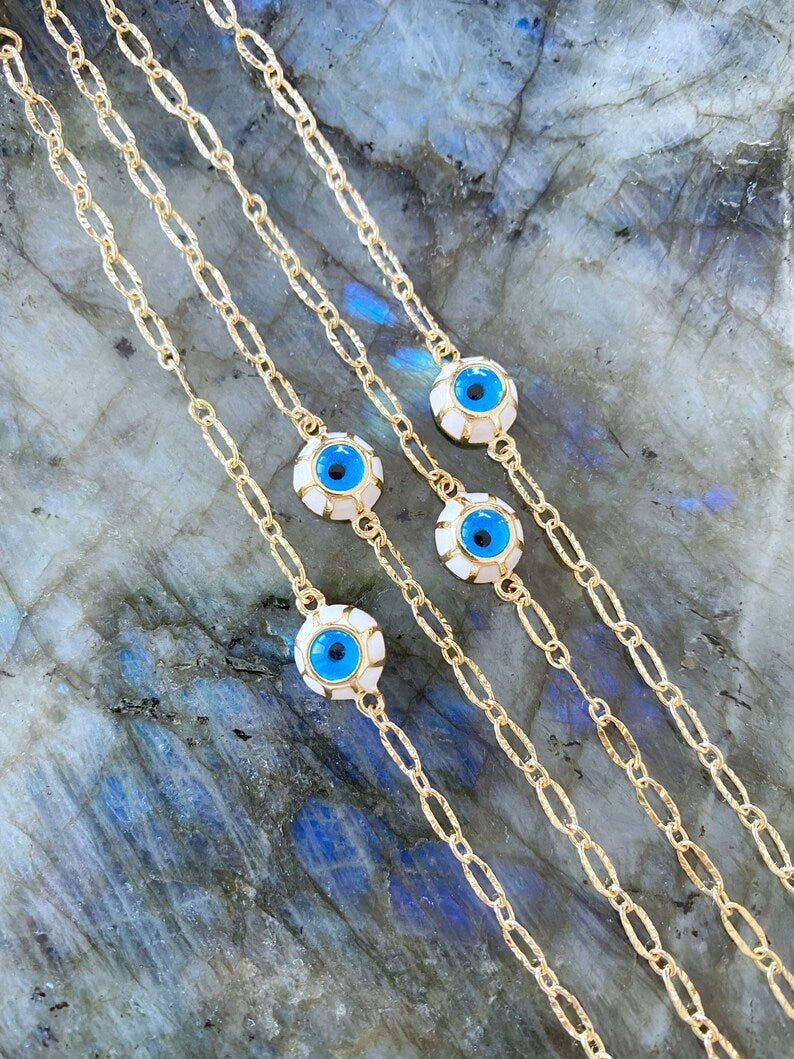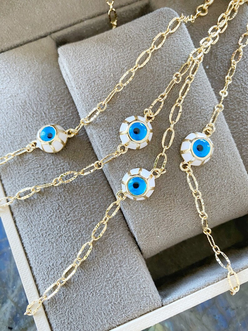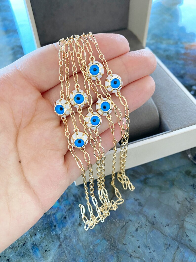 Each Evil Eye Bracelet is handmade with care, ensuring that every piece is unique. The 10mm glass blue beads are meticulously crafted to create a stunning visual appeal. The gold chain is not only stylish but also durable, designed to withstand daily wear while maintaining its shine.