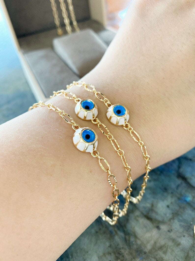 The minimalist design of this bracelet makes it versatile enough to be worn on any occasion. Whether you're dressing up for a special event or looking for a casual accessory, this Evil Eye Bracelet complements any outfit. Pair it with other bracelets for a trendy layered look or wear it alone for a simple yet elegant statement.