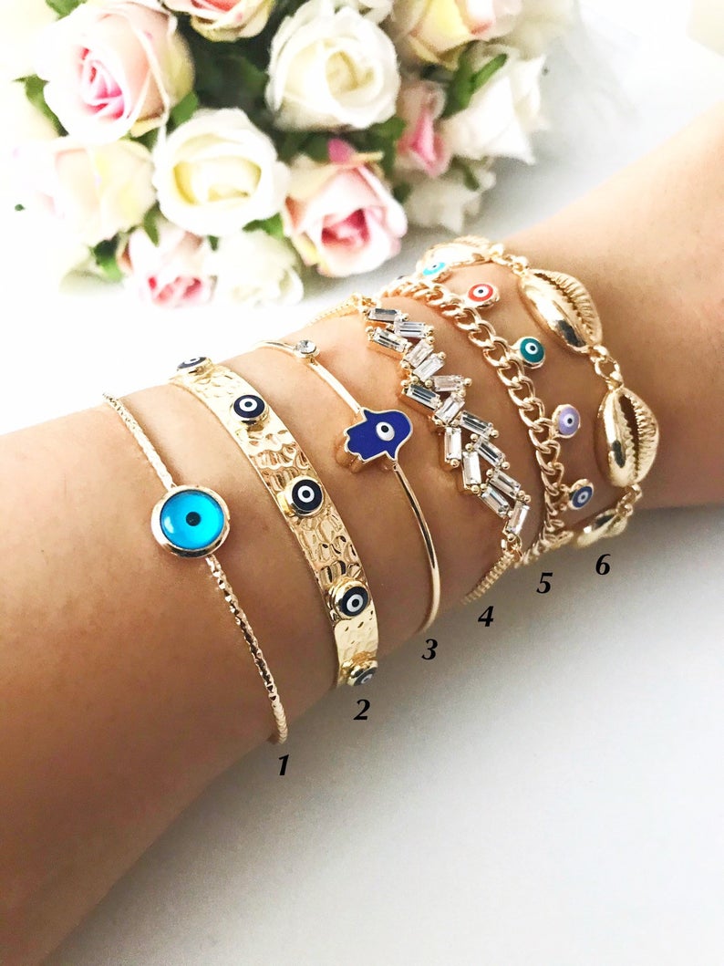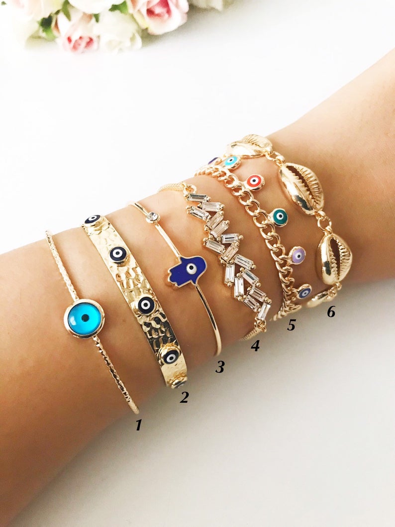 Introducing our exquisite Evil Eye Bracelet collection, a perfect blend of style and protection. These bracelets are not just accessories; they are a symbol of good luck and warding off negative energy. Crafted with care, our evil eye jewelry features a stunning gold bangle design that is both fashionable and meaningful.