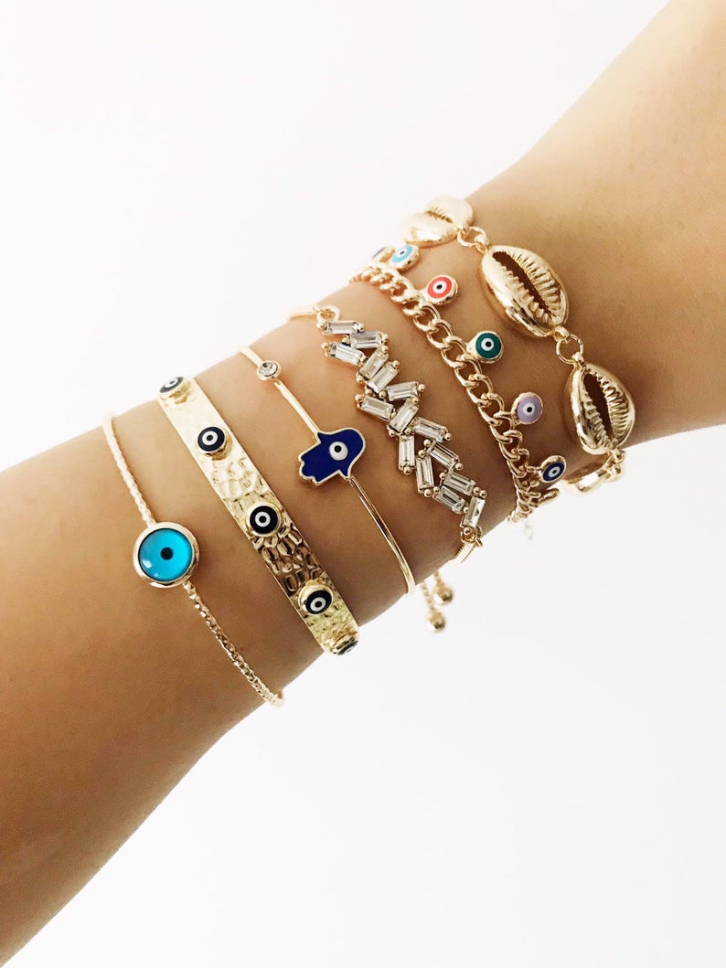 In summary, our Evil Eye Bracelet collection offers a variety of stylish options that are perfect for anyone looking to add a touch of elegance and protection to their jewelry collection. With their adjustable fit, water-resistant properties, and handmade quality, these bracelets are designed to be worn and enjoyed every day. Choose your favorite style during checkout and embrace the beauty and protection of the evil eye!